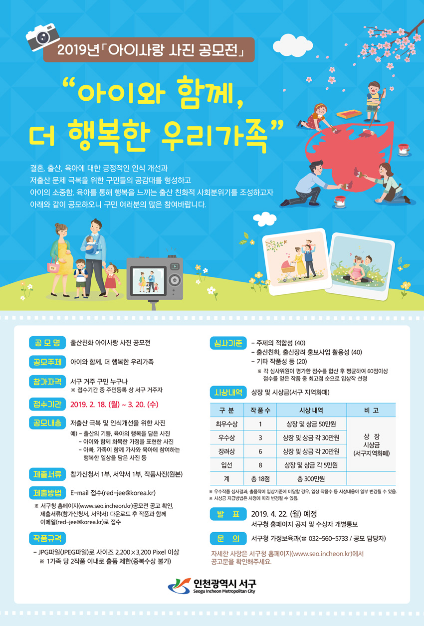 ∘ 문 의: 서구청 가정보육과(☎ 032-560-5733 / 공모 담당자)