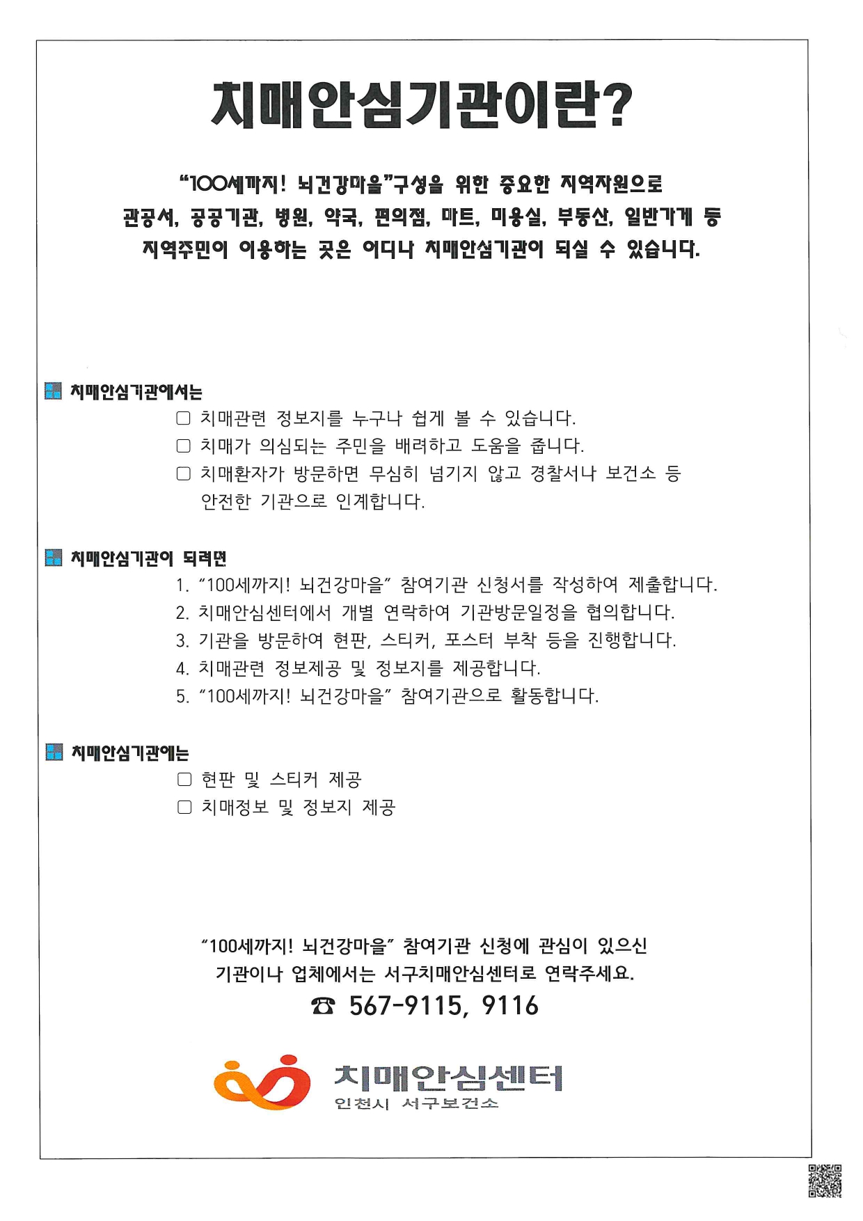 "100세까지! 뇌건강마을" 치매안심기관 모집 안내