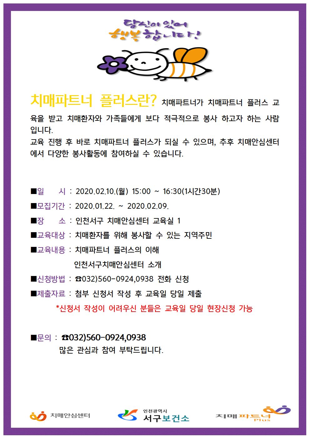 서구치매안심센터 치매파트너플러스 교육 참석자 모집