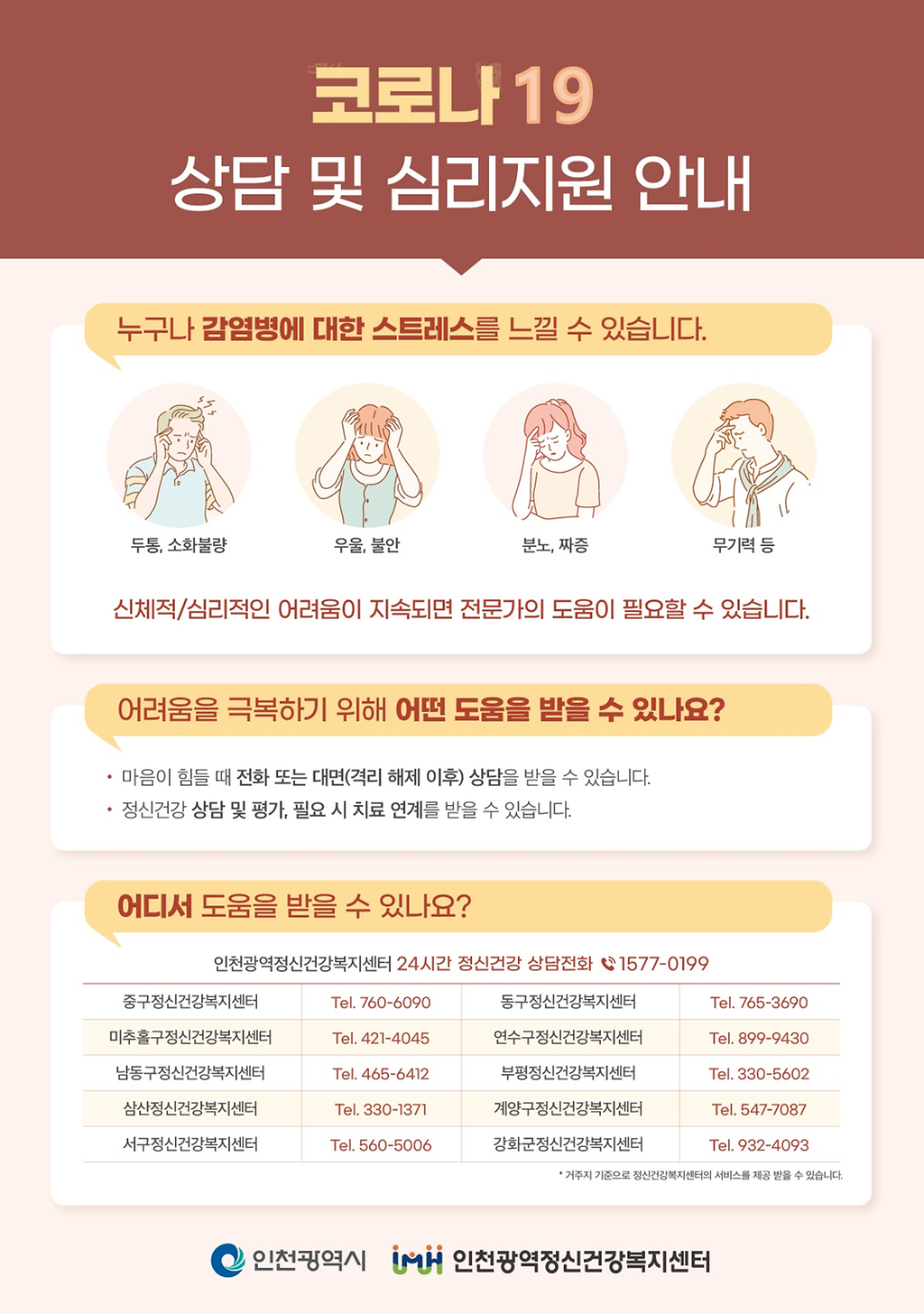 인천광역 정신건강복지센터 (☎1577-0199)로 연락주시기 바랍니다.