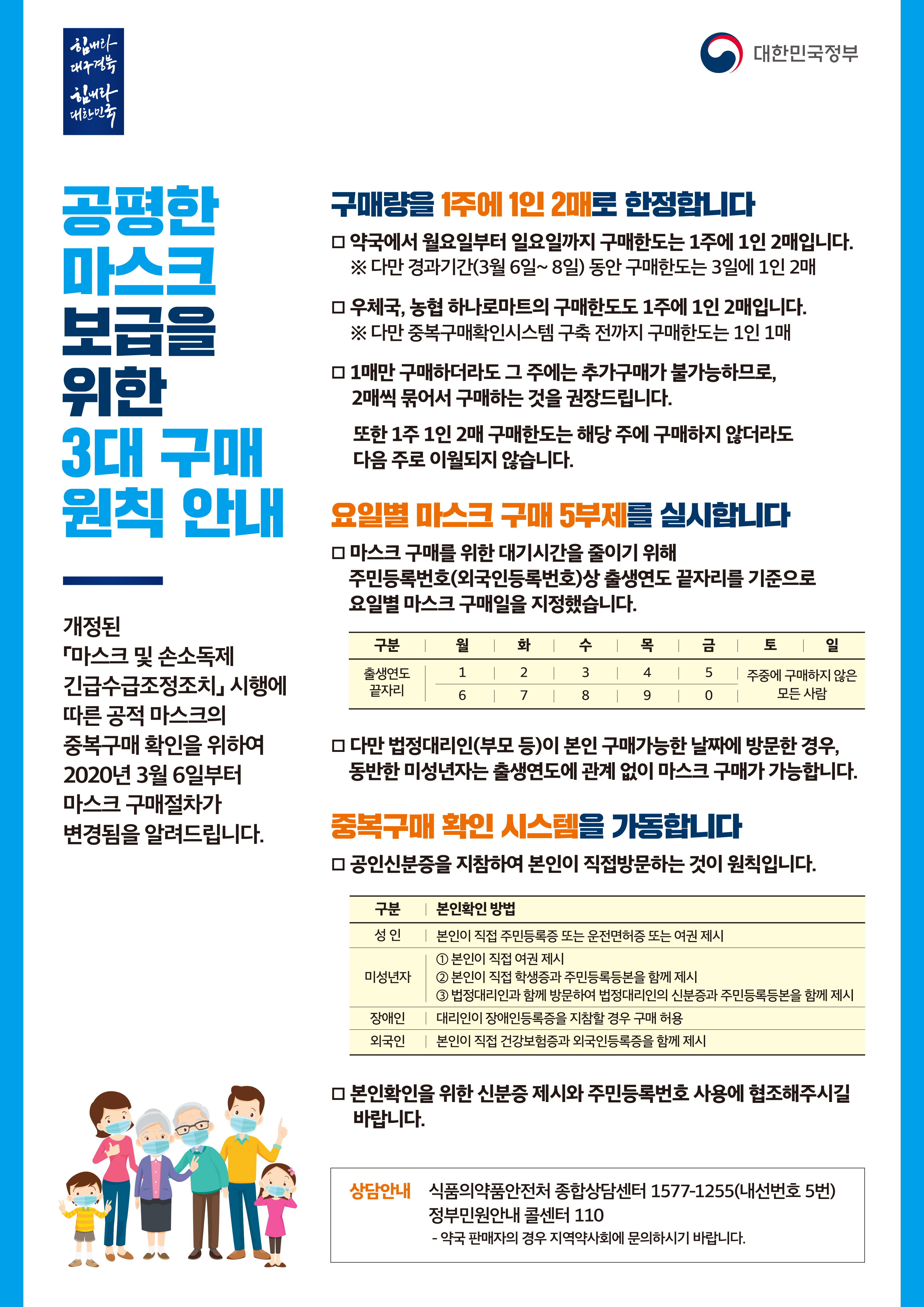 공적마스크 구매 원칙 안내드립니다.