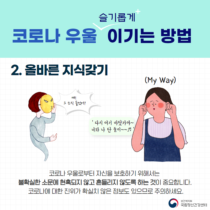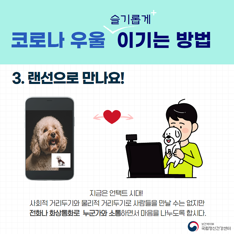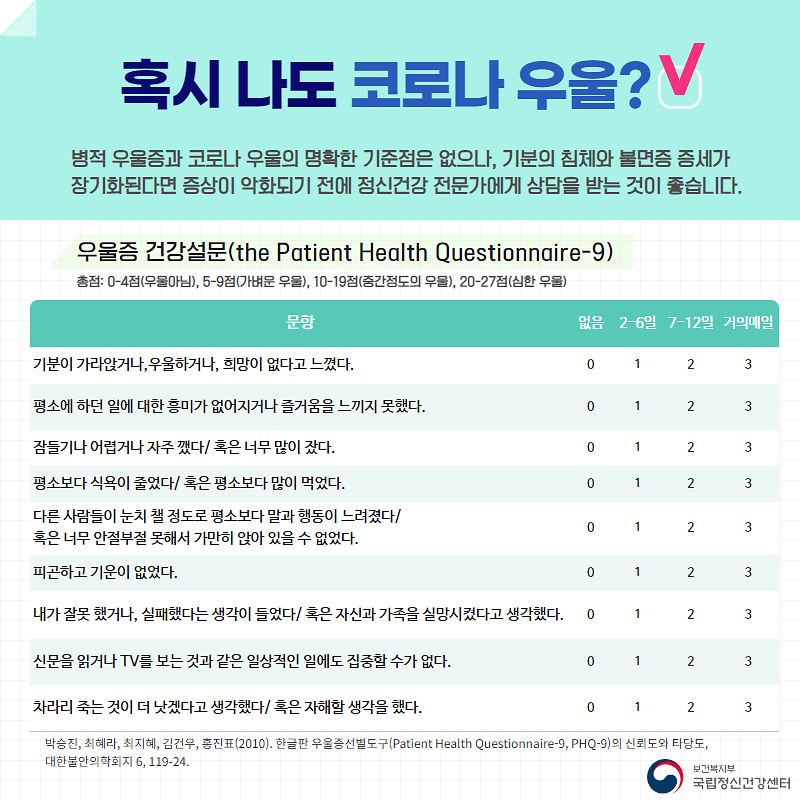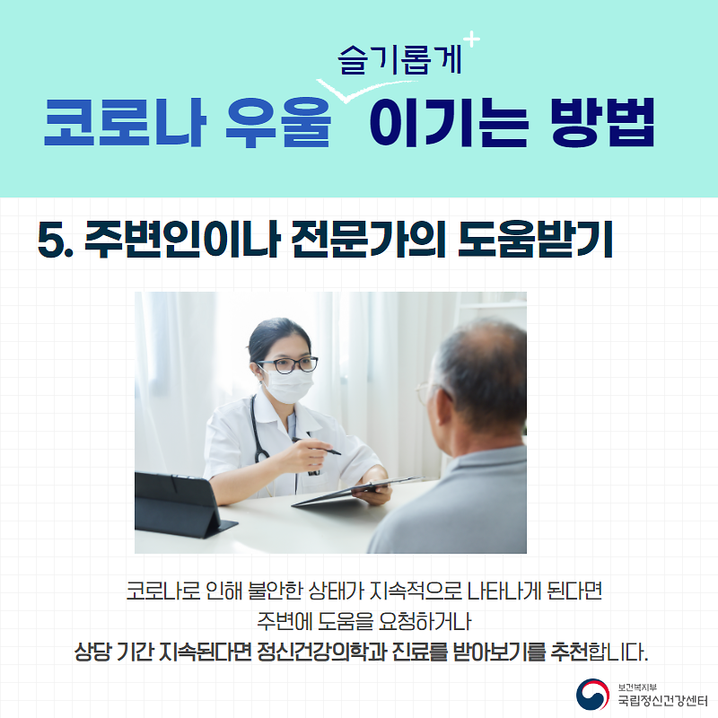 코로나 우울을 슬기롭게 이기는 방법 등을 통해 모두 함께 이겨내보아요!