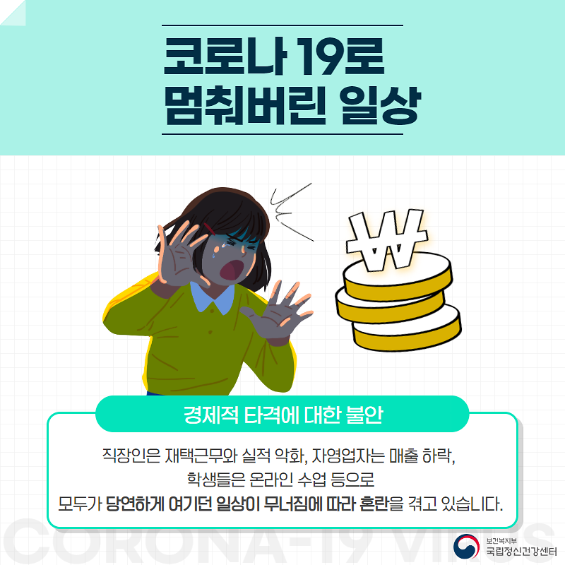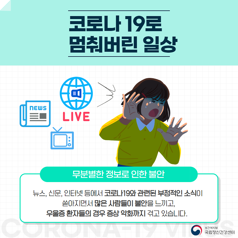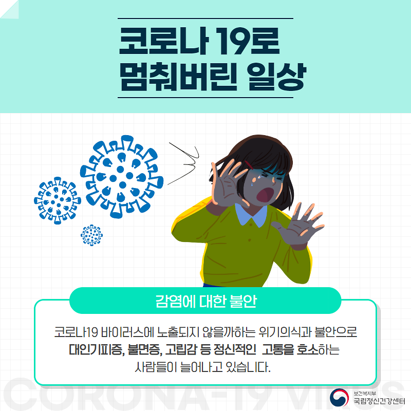 국립정신건강센터에서는 코로나 우울로 불안을 느끼는 사람들을 위하여