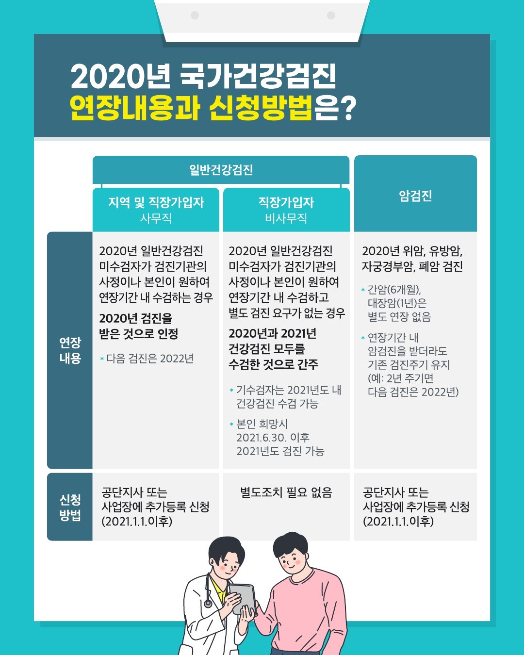 2020년 국가건강검진 기간연장 적용대상과 기간은?