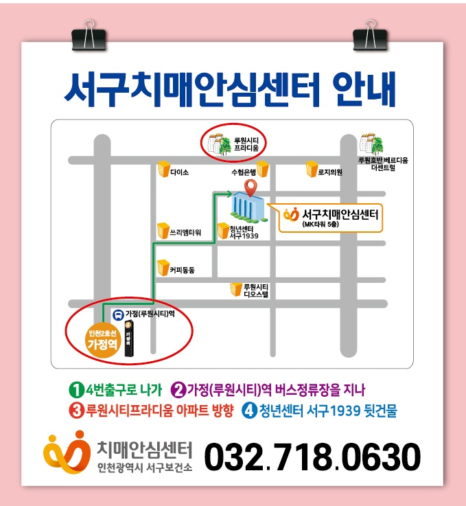 - 전화 예약: 서구치매안심센터 치매검진팀 ☎ 032-718-0662~0669