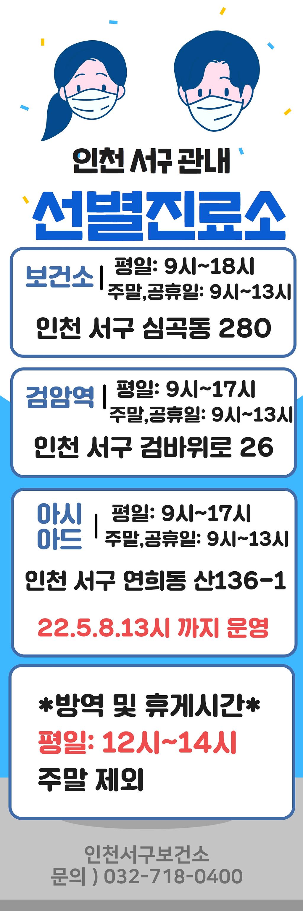 관내 선별진료소 및 임시선별진료소 운영안내(22.5.3.기준)