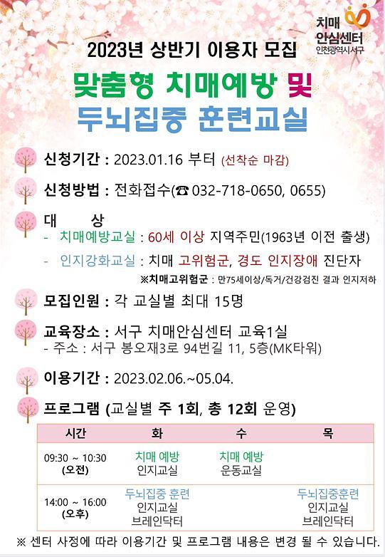 2023년 맞춤형 치매예방교실&두뇌집중 훈련교실 대상자 모집
