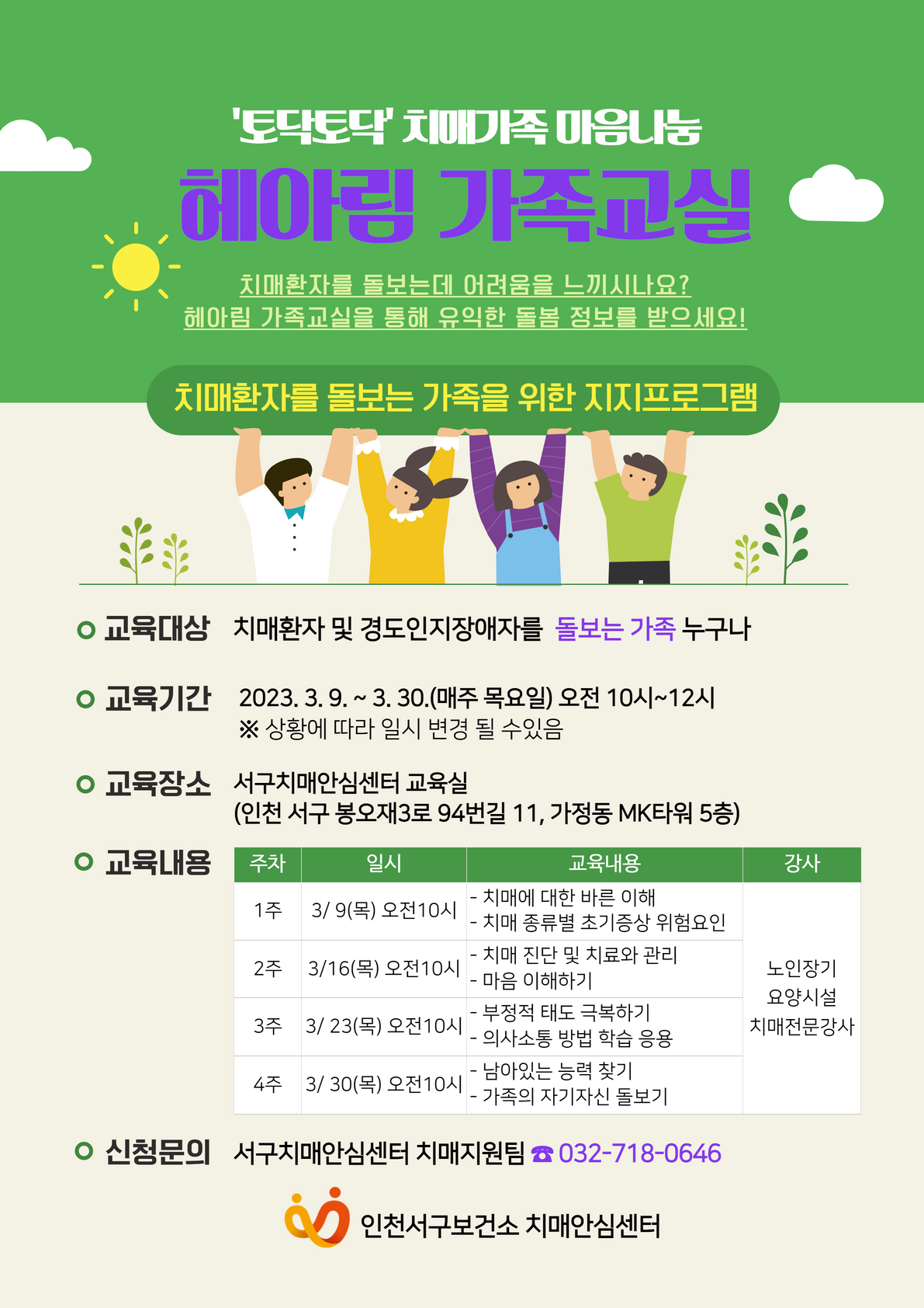 - 신청문의 : 치매지원팀 ☎032-718-0646