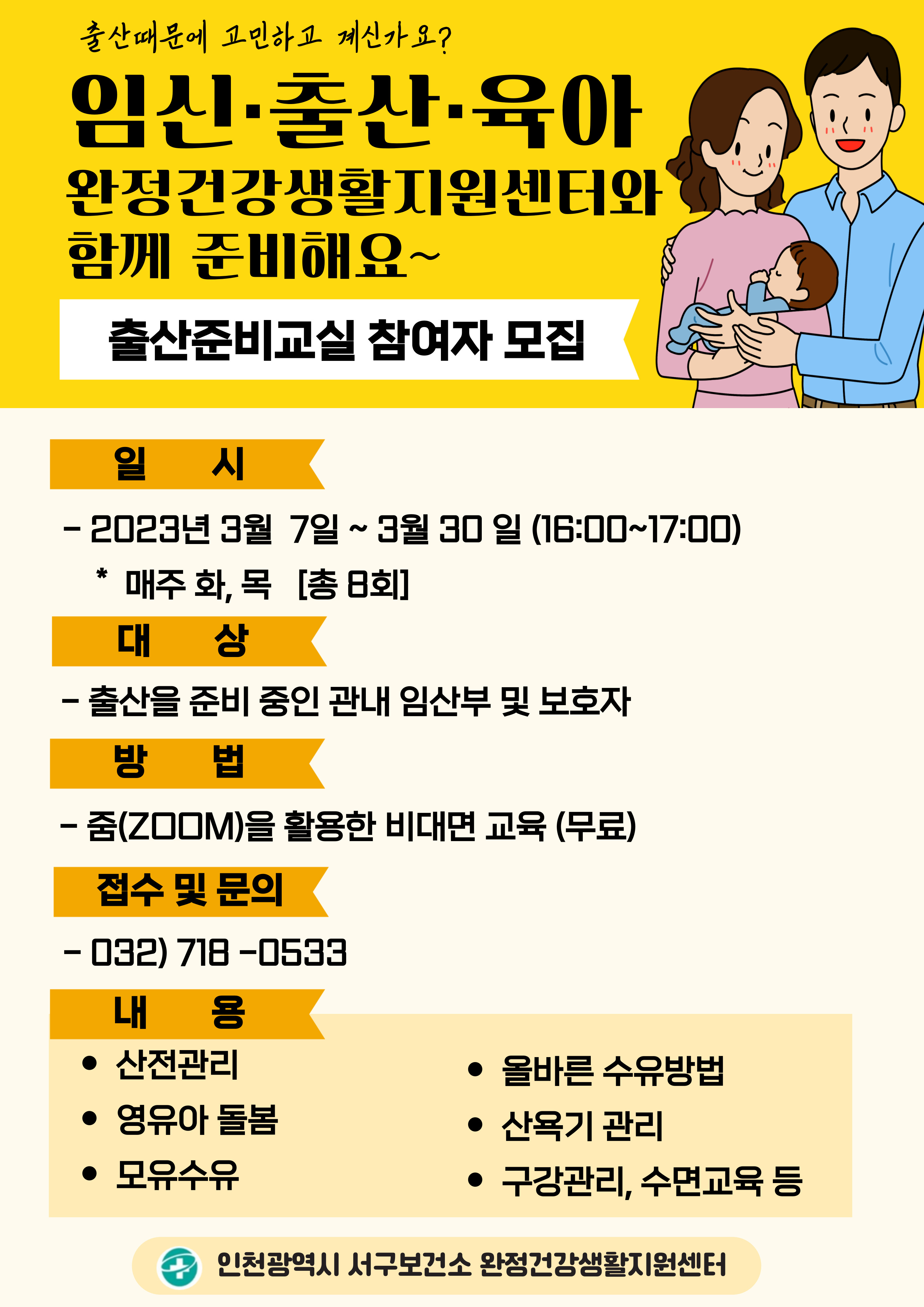 완정건강생활지원센터 비대면 출산준비교실 참여자 모집