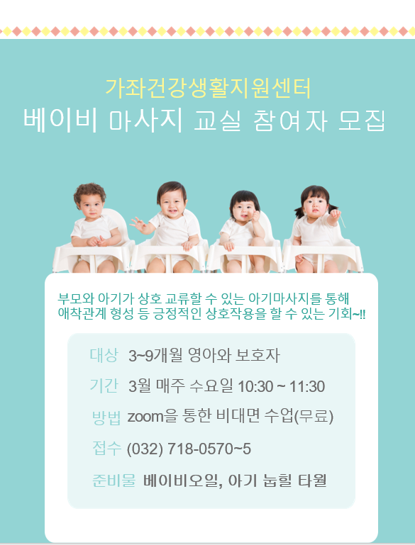 가좌건강생활지원센터 비대면 베이비마사지 교실 운연 참여자 모집