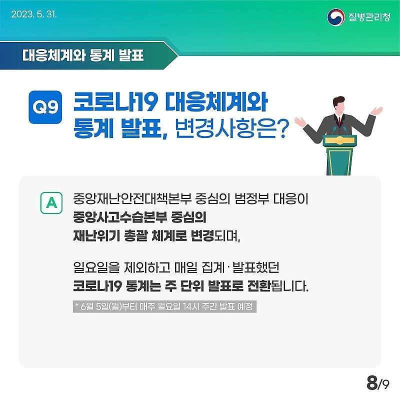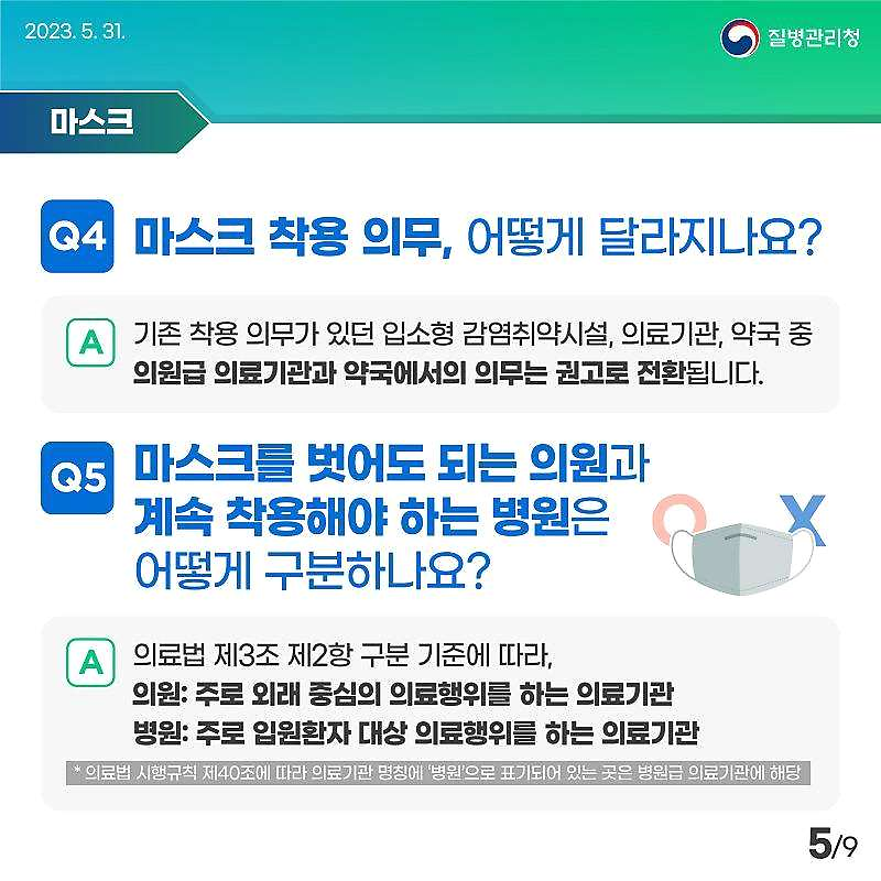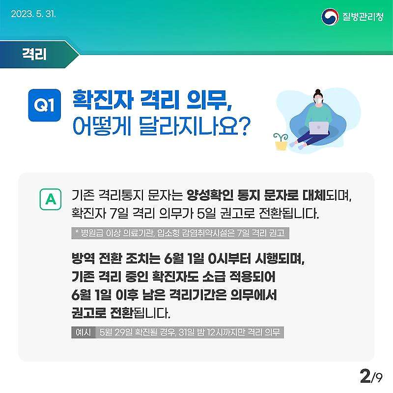☞ [5.31.수.정례브리핑 보도자료] 코로나19 위기단계 하향 및 주요 방역조치 전환 | 질병관리청 (kdca.go.kr)