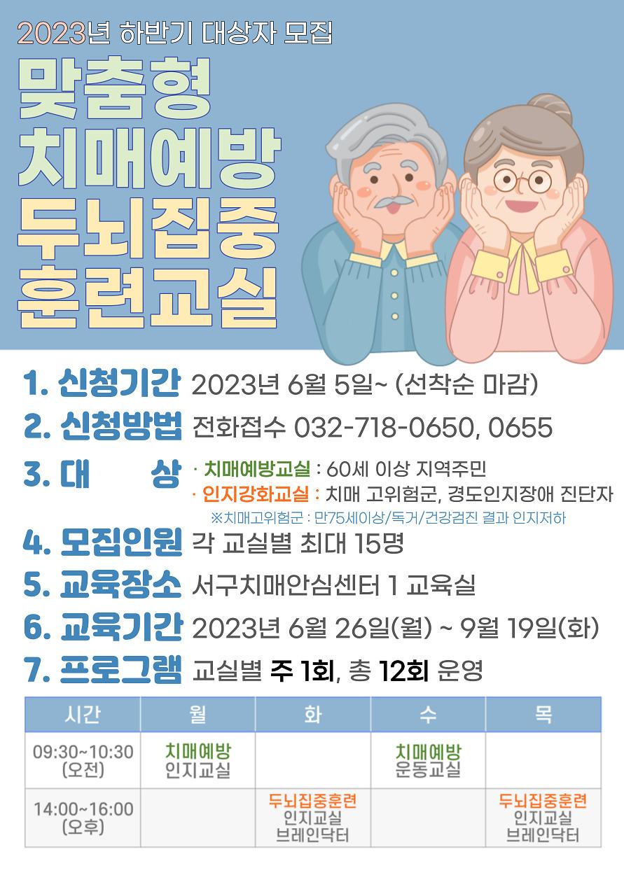 2023년 하반기 맞춤형 치매예방교실&두뇌집중 훈련교실 대상자 모집