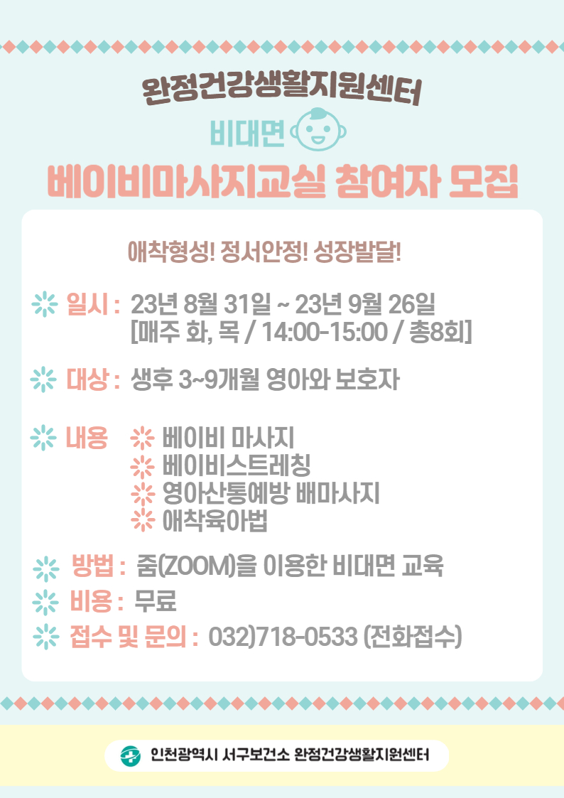 완정건강생활지원센터 『비대면 베이비 마사지 교실』참여자 모집