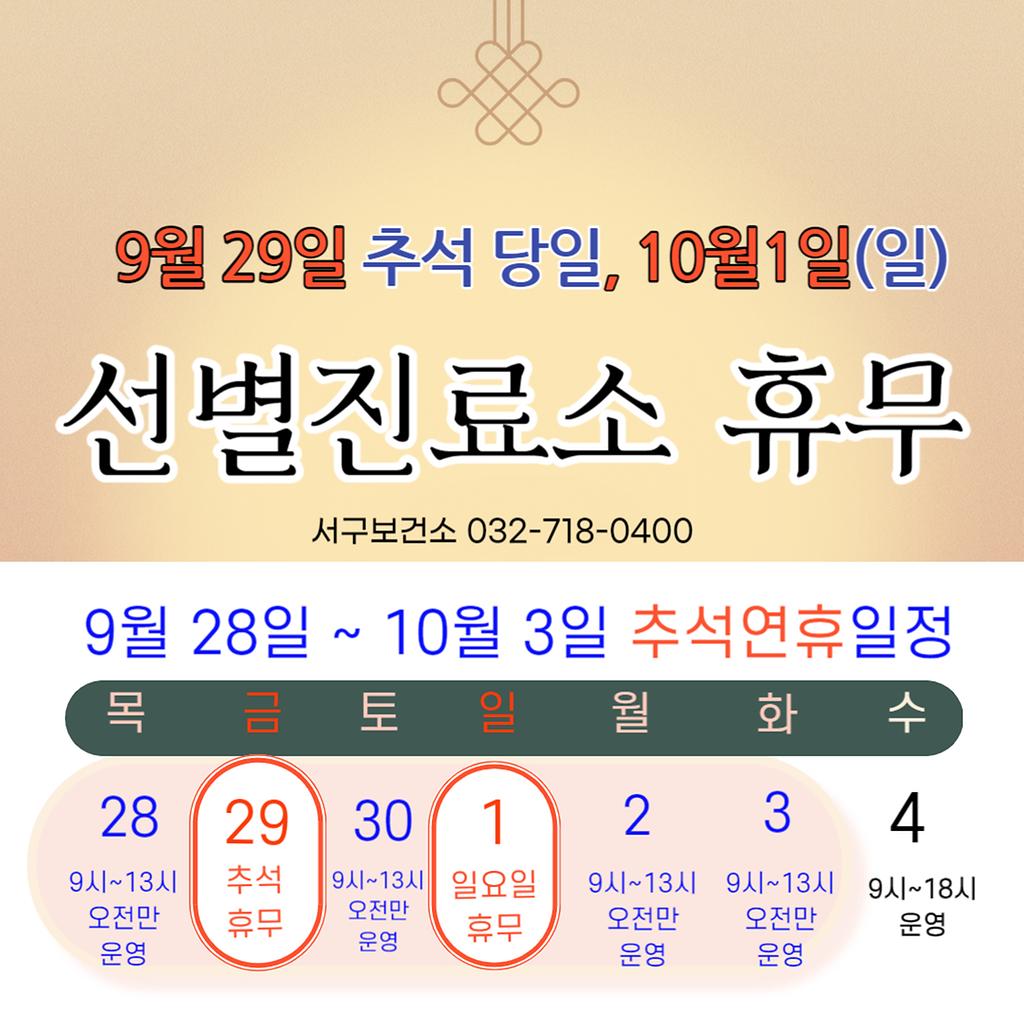 서구보건소 선별진료소 휴무 안내드립니다.