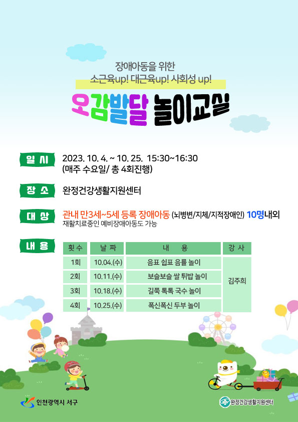 하반기 [장애아동 오감발달 놀이교실] 프로그램 접수 안내