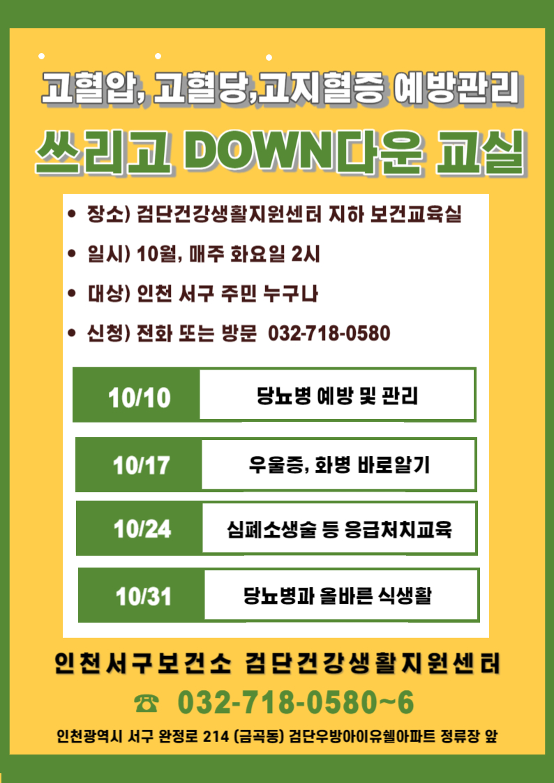 검단건강생활지원센터『쓰리고 다운 교실』참여 안내