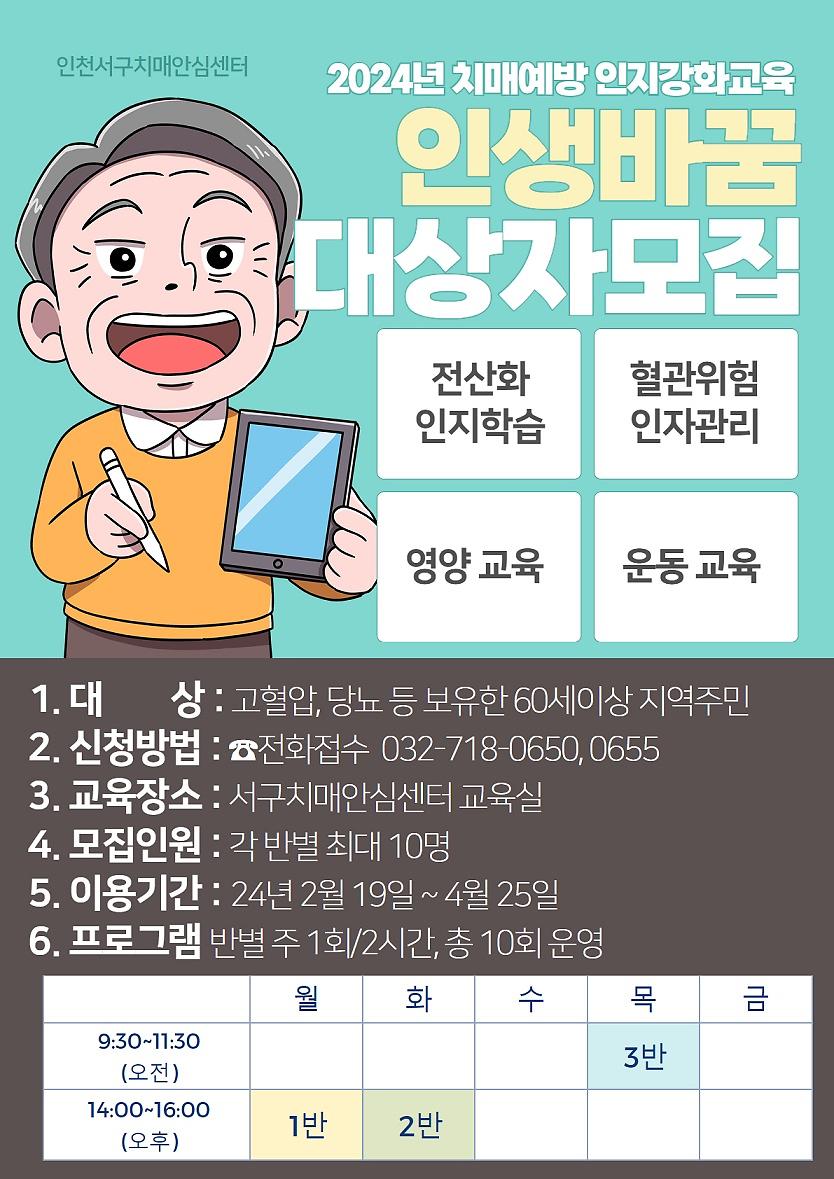 □ 교육장소 : 서구치매안심센터(인천광역시 서구 봉오재3로94번길 11 MK타워 5층, 가정1동)