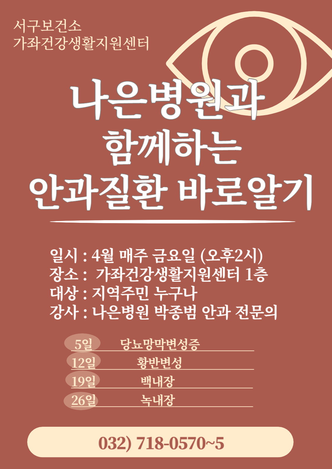 가좌건강생활지원센터 [안과질환 바로알기] 건강강좌 안내