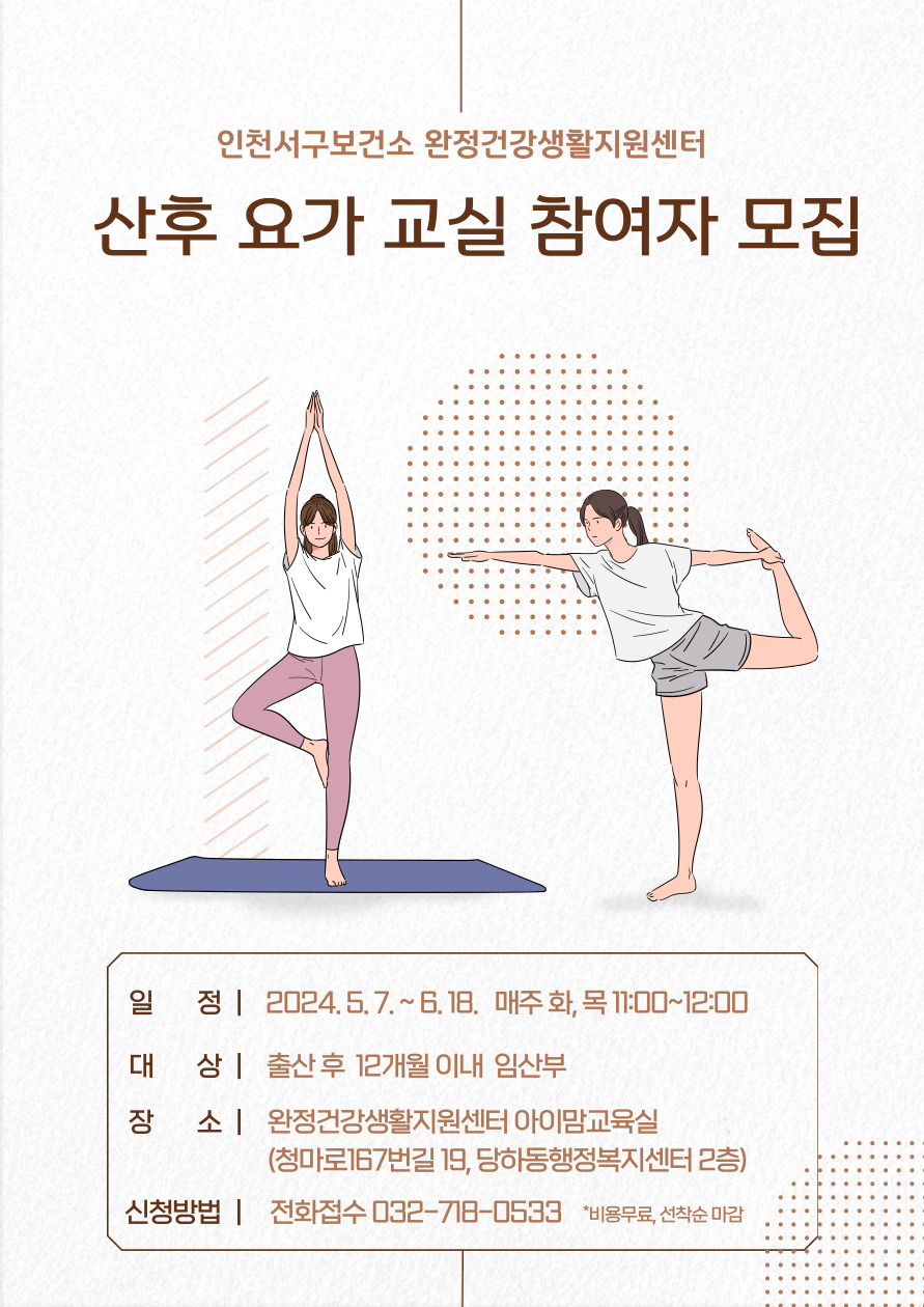 완정건강생활지원센터 산후요가교실 참여자 모집