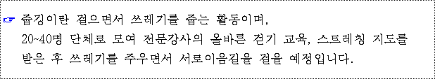 ◌ 내용 : 환경정화 및 건강증진을 위한 ‘줍깅 활동’실시