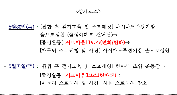 - 5월31일(금): 서로이음길 3코스(천마산) 일부