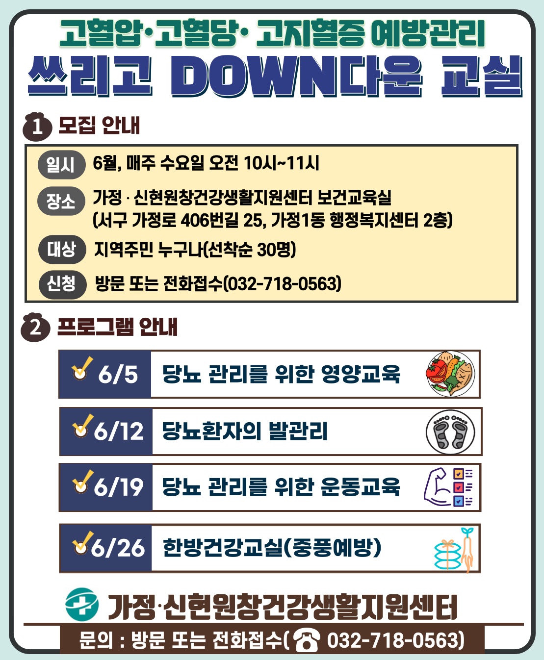 ■ 가정신현원창건강생활지원센터 『 쓰리고 다운(down) 교실(2기)』참여자 모집