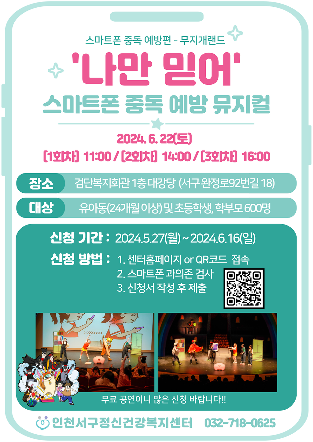 스마트폰 중독 예방 뮤지컬을 개최하오니 관심있는 지역주민의 많은 참여 바랍니다.