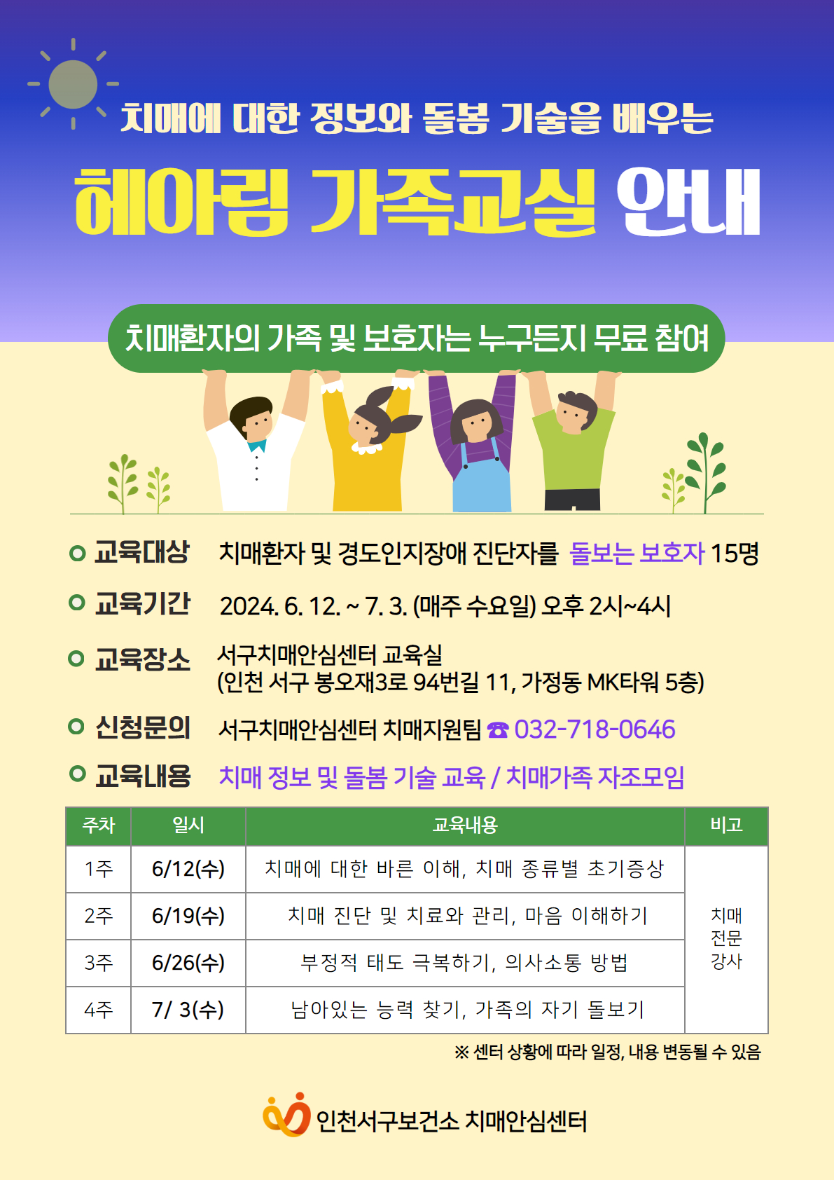 서구치매안심센터에서는 치매환자 가족을 위한 2024년도 제2기『헤아림 가족교실』 을 운영합니다.