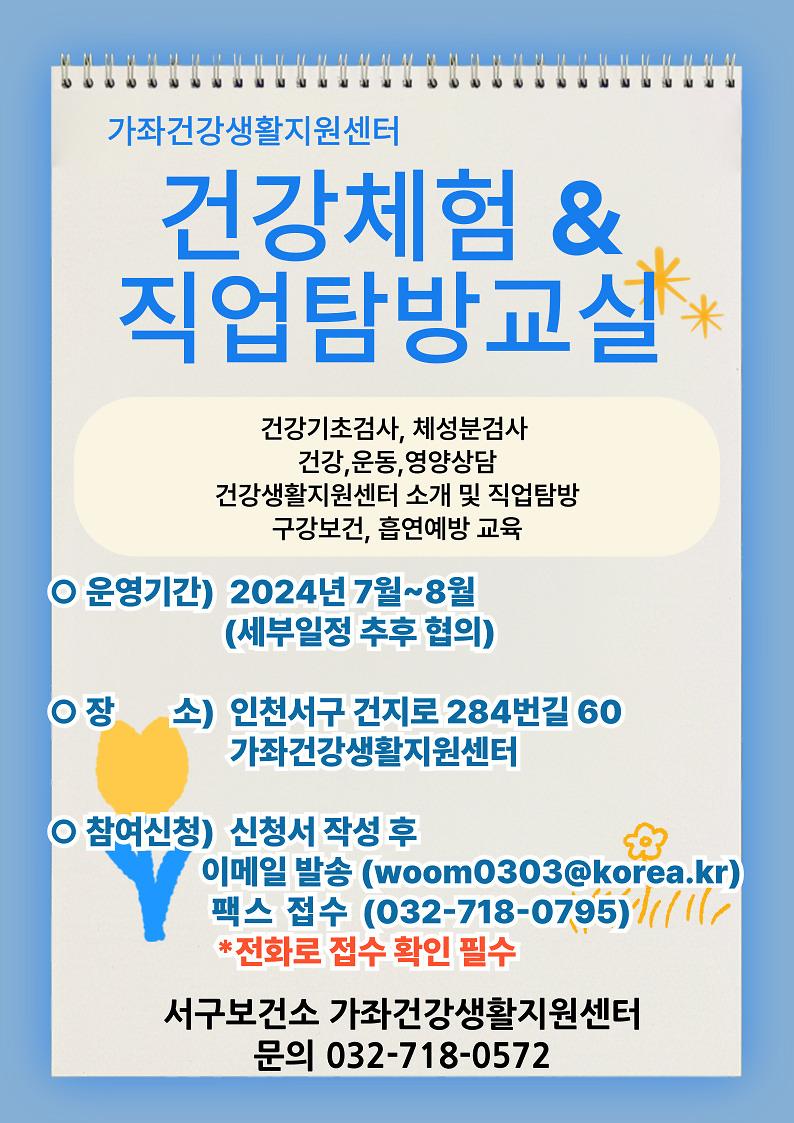가좌건강생활지원센터 건강체험 직업탐방교실 참여안내
