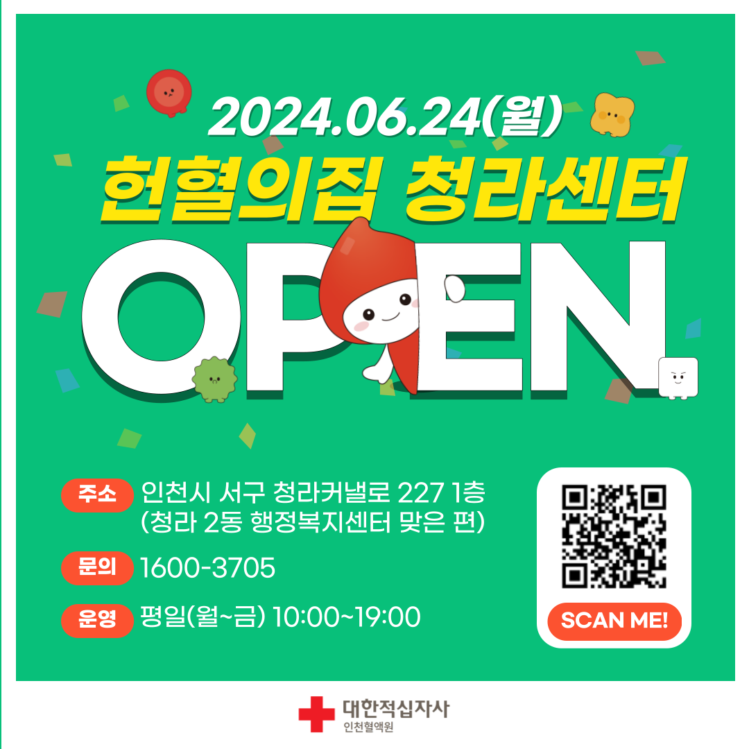 「헌혈의집 청라센터」개소안내 [2024.6.24.(월) 개소예정]