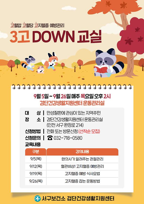 3고(고혈압,고혈당,고지혈증) DOWN 교실 운영안내