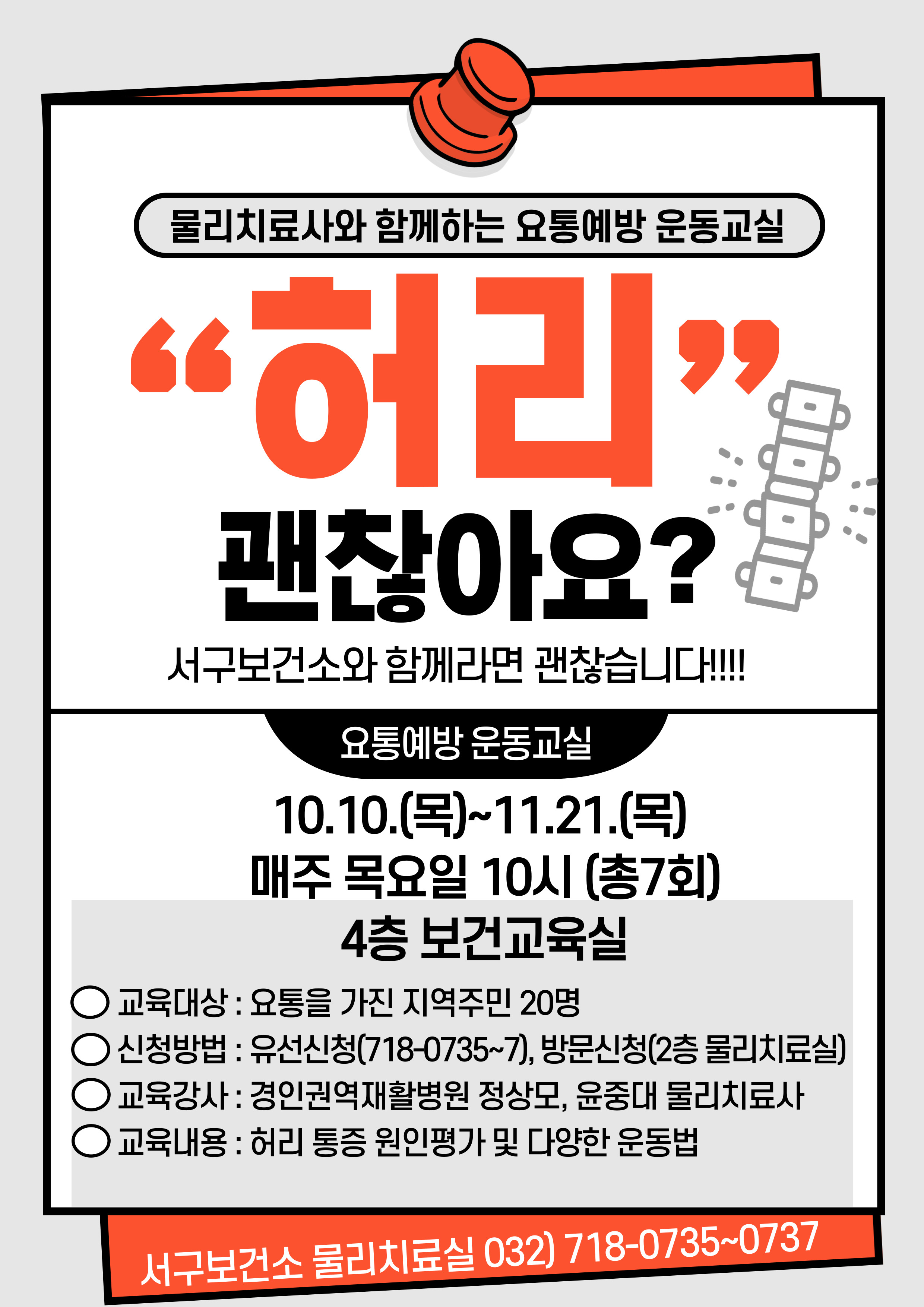 ○ 교육대상: 요통을 가진 서구 지역주민 20명