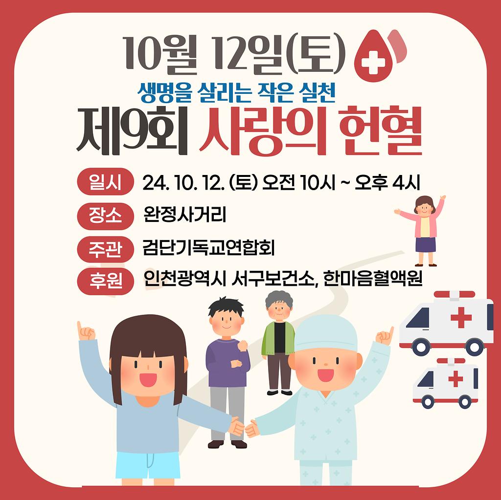 「지역주민과 함께하는 제9회 사랑의헌혈」 안내 [10.12.(토)10:00~16:00]