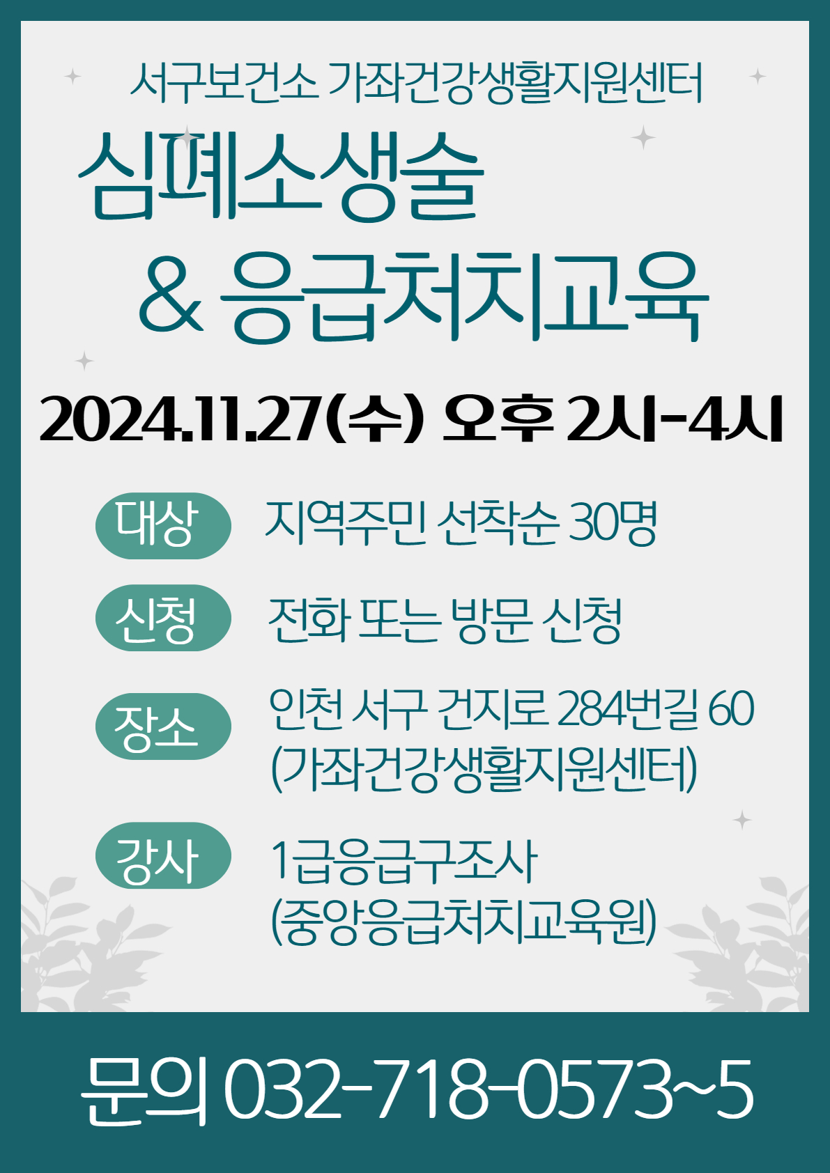 가좌건강생활지원센터 심폐소생술 응급처치 교육 참여자 모집
