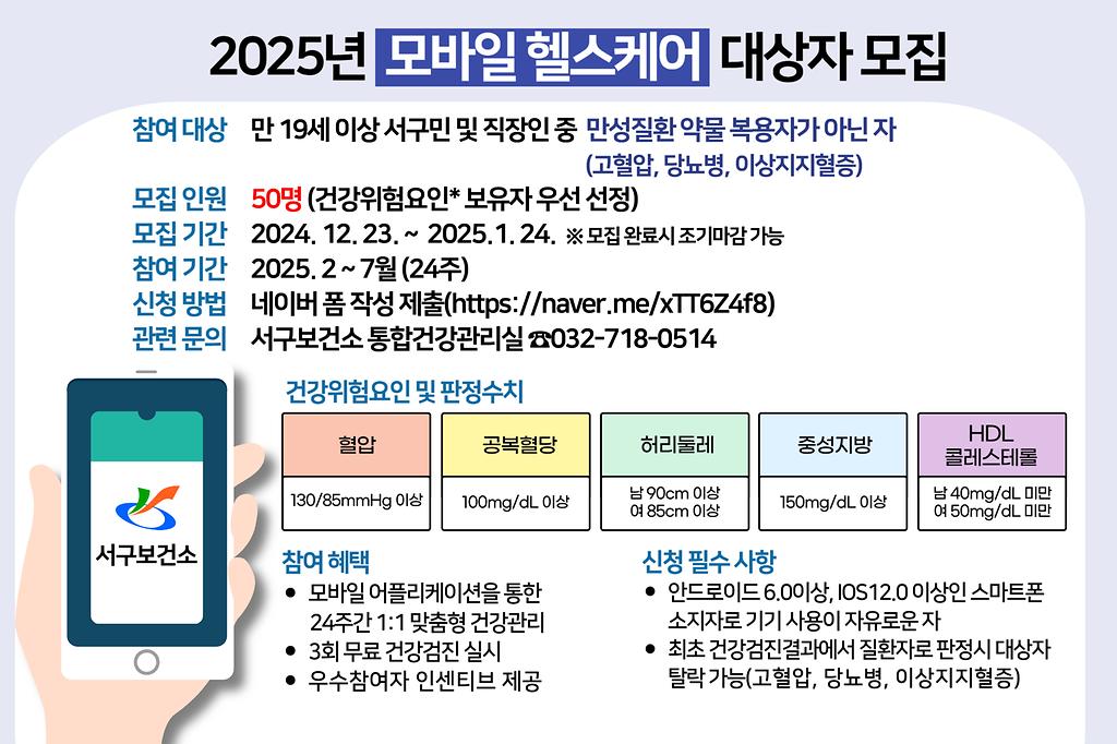 2025년도 모바일 헬스케어 사업 대상자 모집을 실시합니다.