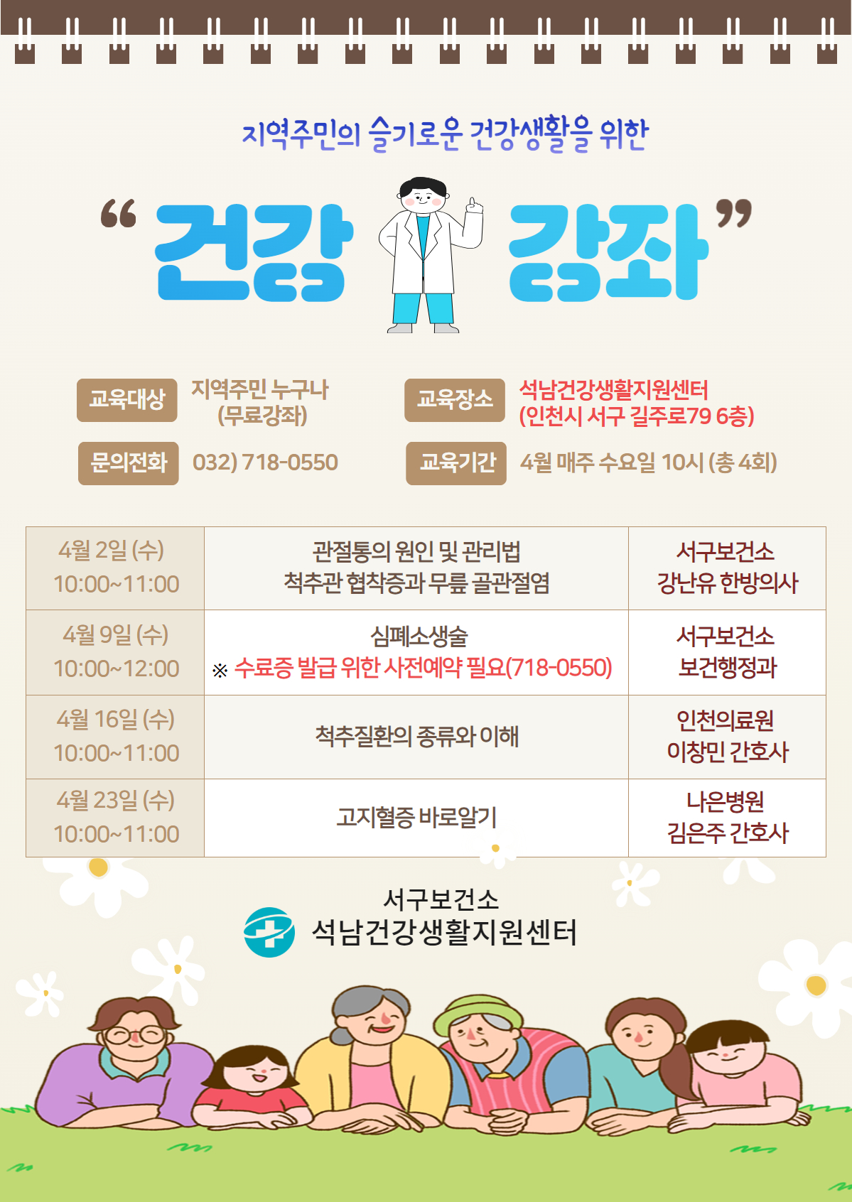 석남건강생활지원센터 4월 지역사회 건강강좌 안내
