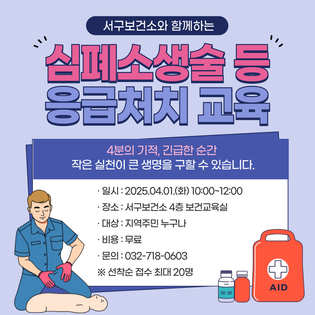○ 서구보건소에서 구민을 대상으로 심폐소생술 등 응급처치 교육을 시행합니다.