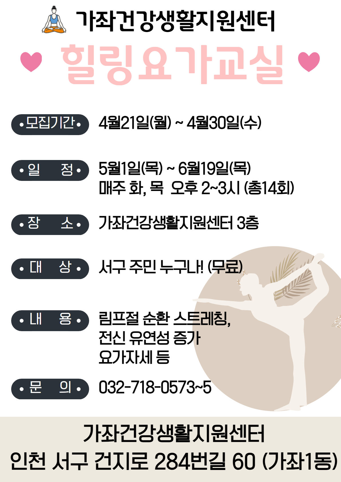 ○ 내용: 림프절 순환 스트레칭, 전신 유연성 증가 요가 자세 등