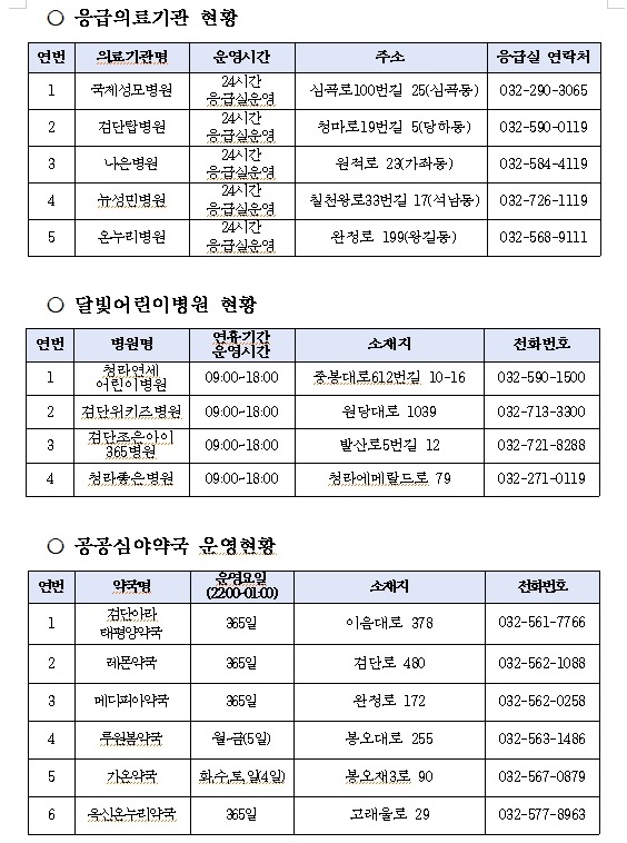 5월 연휴기간(2025.5.3.~5.6.) 응급의료기관 안내