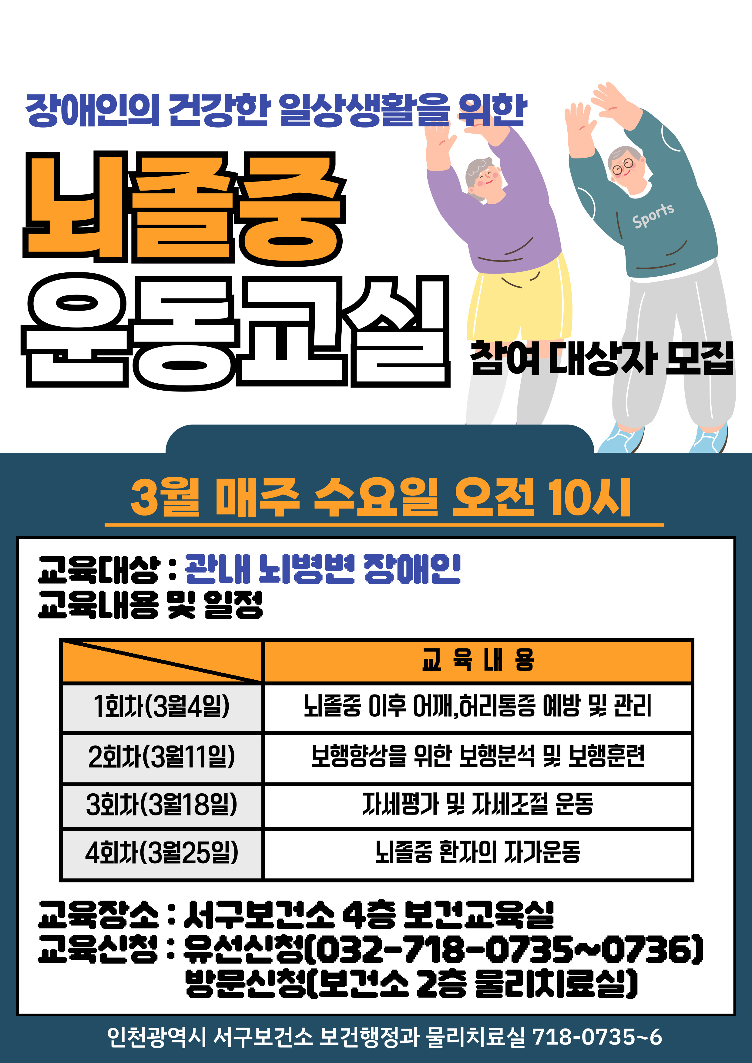 장애인의 건강한 일상생활을 위한 『뇌졸중 운동교실』 참여 대상자 모집안내