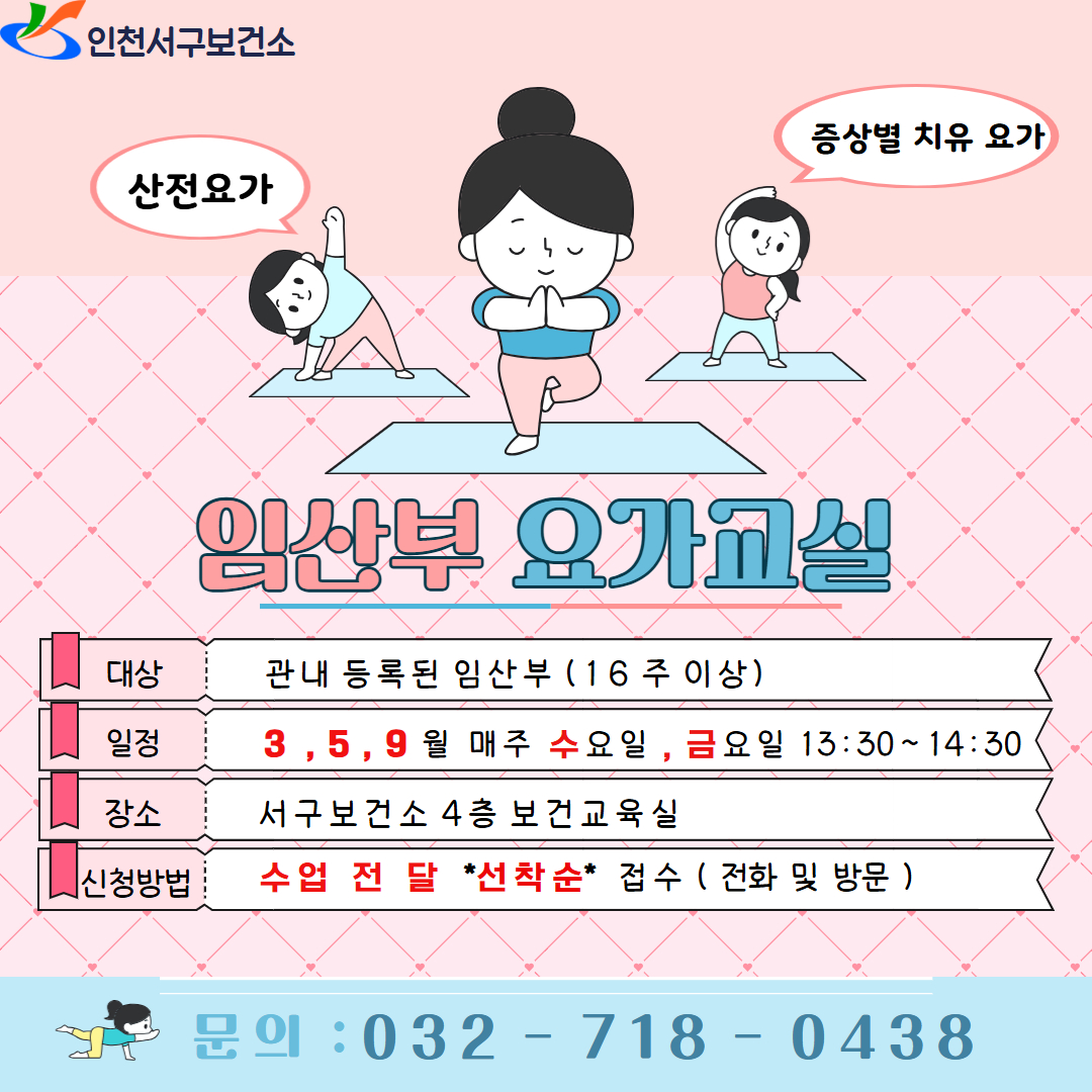 서구보건소에서 임산부 요가교실을 운영하고 있으니 많은 참여 바랍니다.