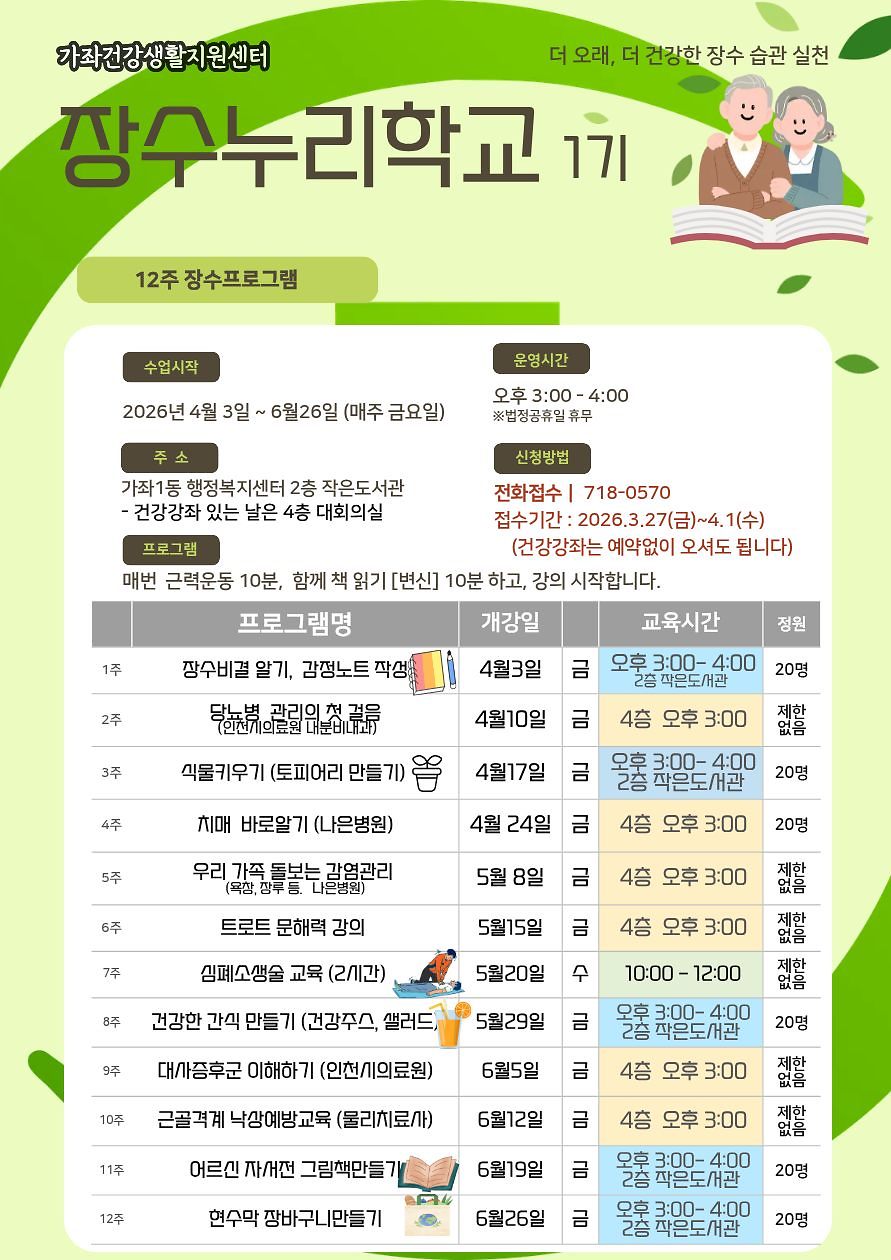 가좌건강생활지원센터 장수누리학교 1기 참여자 모집 안내