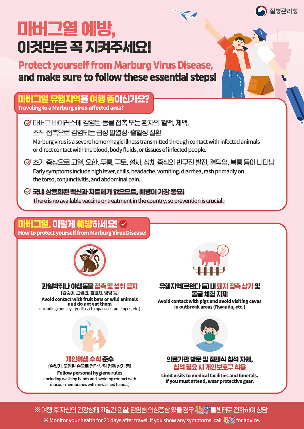 최근 아프리카 르완다에서 치명률이 높은 마버그열 발생이 보고됨에 따라 5개 마버그열 검역관리지역으로 지정
