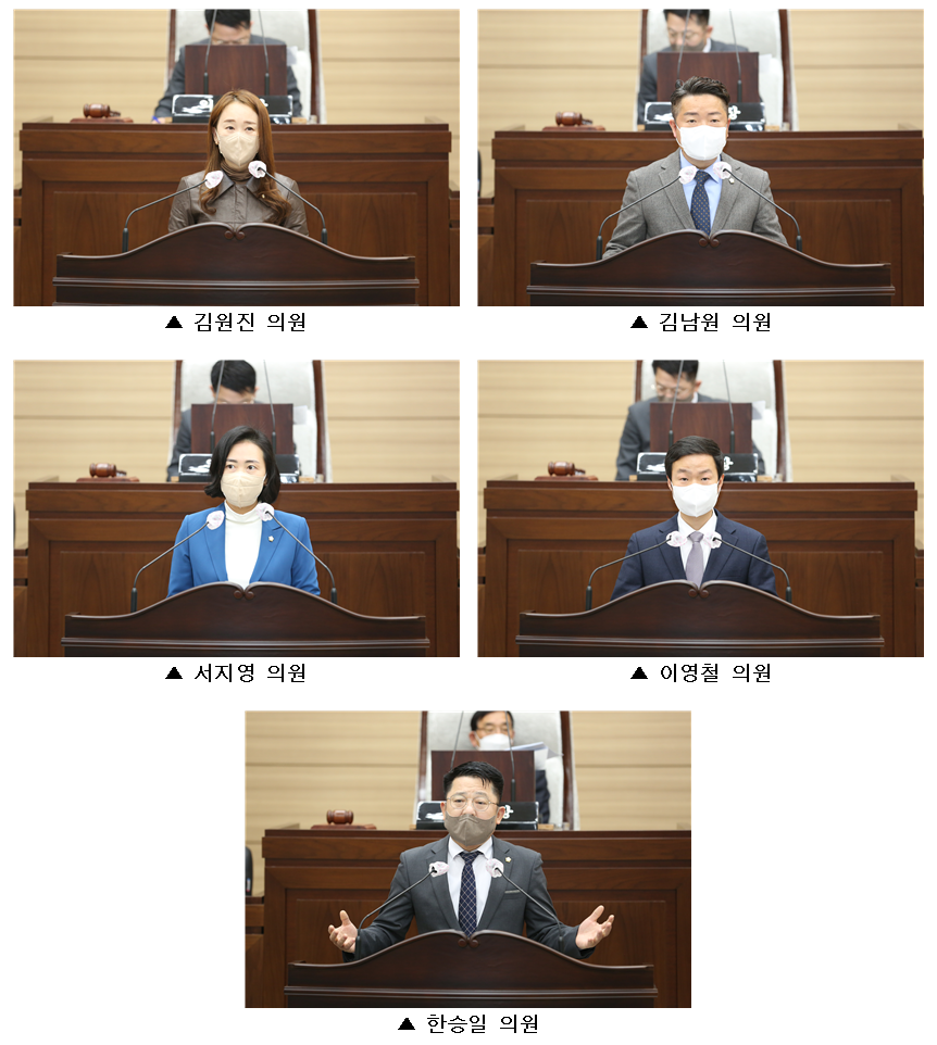 인천 서구의회 제255회 제2차 정례회 중 김원진, 김남원, 서지영, 이영철, 한승일 의원 의정자유발언 실시