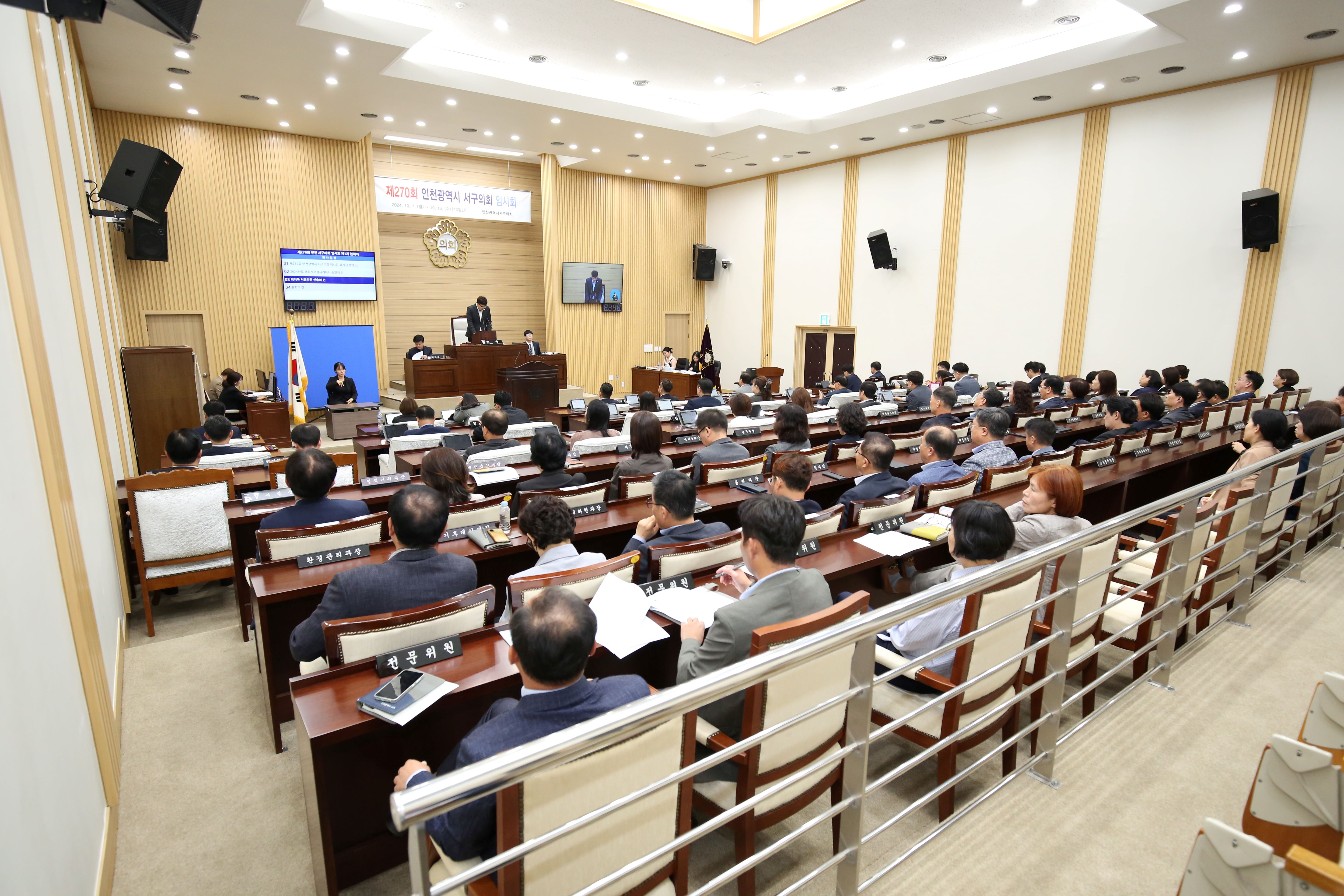 인천 서구의회(의장 송승환)가 제270회 임시회 개회식과 제1차 본회의를 열고 총 10일간의 의사일정을 시작했다.