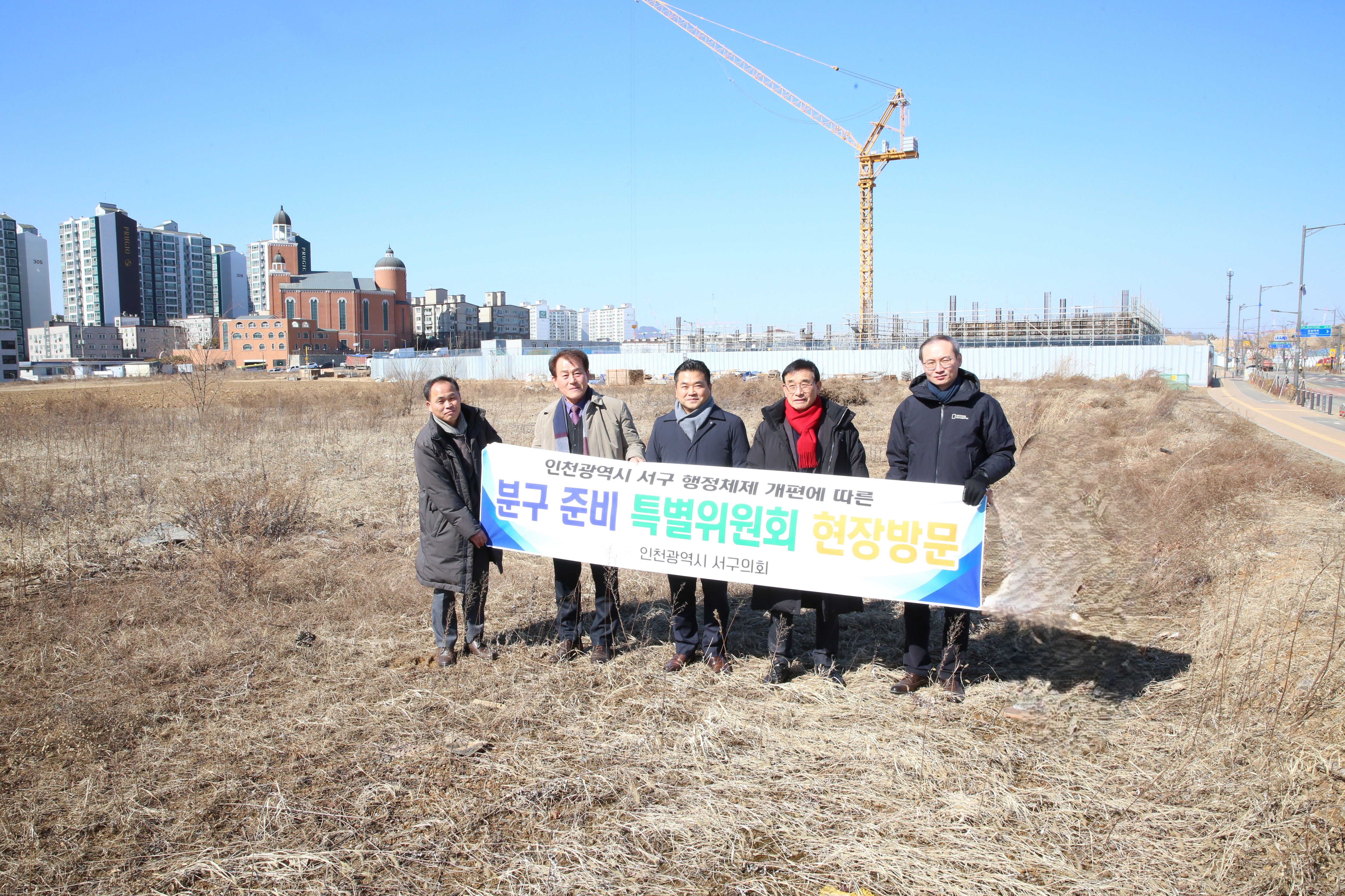 인천서구의회 ‘행정체제 개편에 따른 분구 준비 특별위원회’ (이하 분구특위, 위원장 심우창의원)가 이달 20일 현장방문을 실시하여 인천하늘초등학교와 검단구 임시청사 부지를 답사하고, 검단구 모듈러 임시청사 확보 방안을 점검했다.