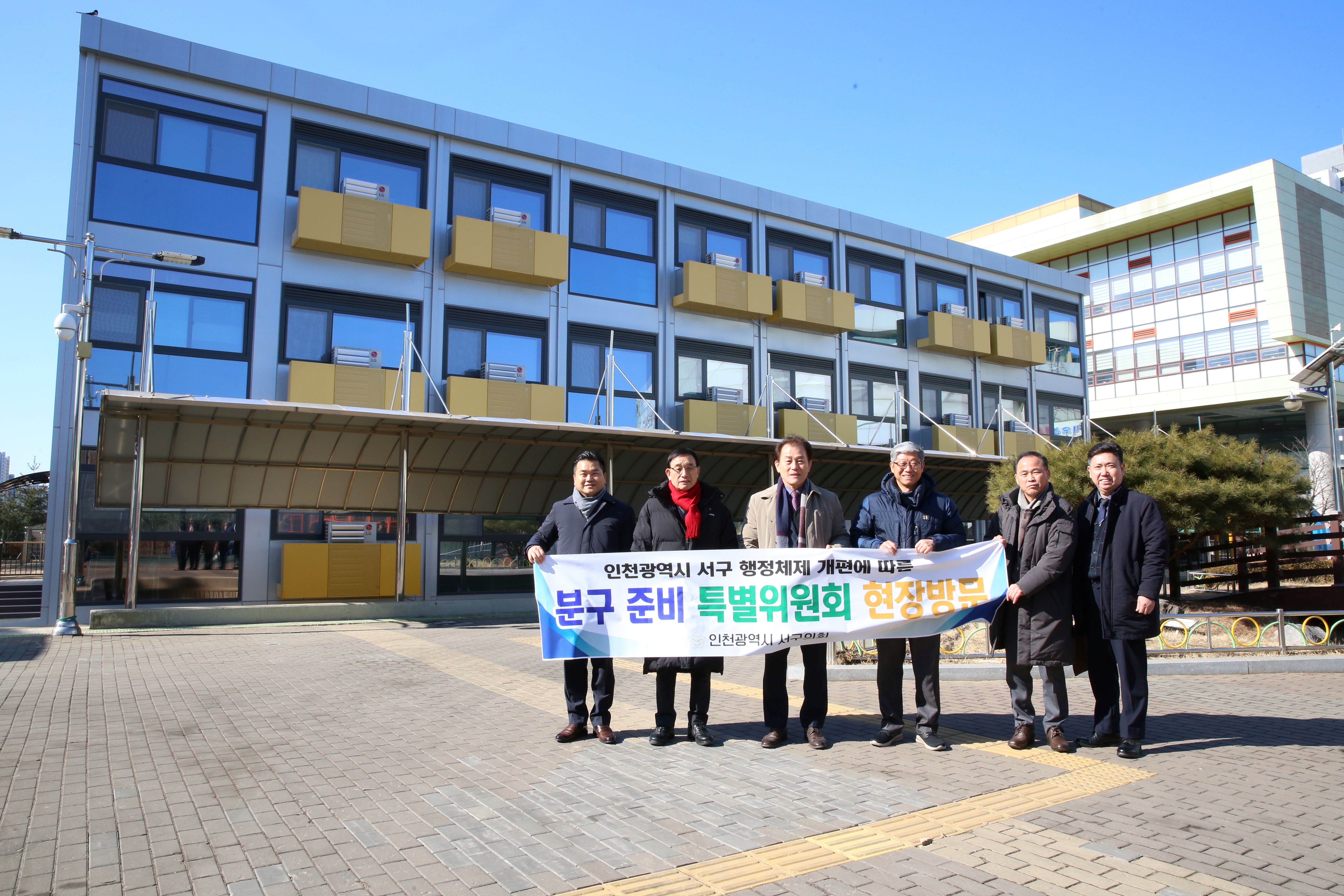 분구특위는 모듈러 건축물의 청사 사용 적합성 여부를 확인하기 위해, 동일한 방식으로 설치된 인천하늘초등학교의 모듈러 교실을 살펴보고, 검단구 모듈러 임시청사 제작·설치 및 임차용역 추진 보고를 받았다. 현장방문에는 분구특위 위원장인 심우창 의원과 이한종․홍순서 부위원장이 참석했고, 서구청에서는 김상섭 부구청장, 이석원 분구추진 단장을 비롯한 관계 공무원이 동행했다.