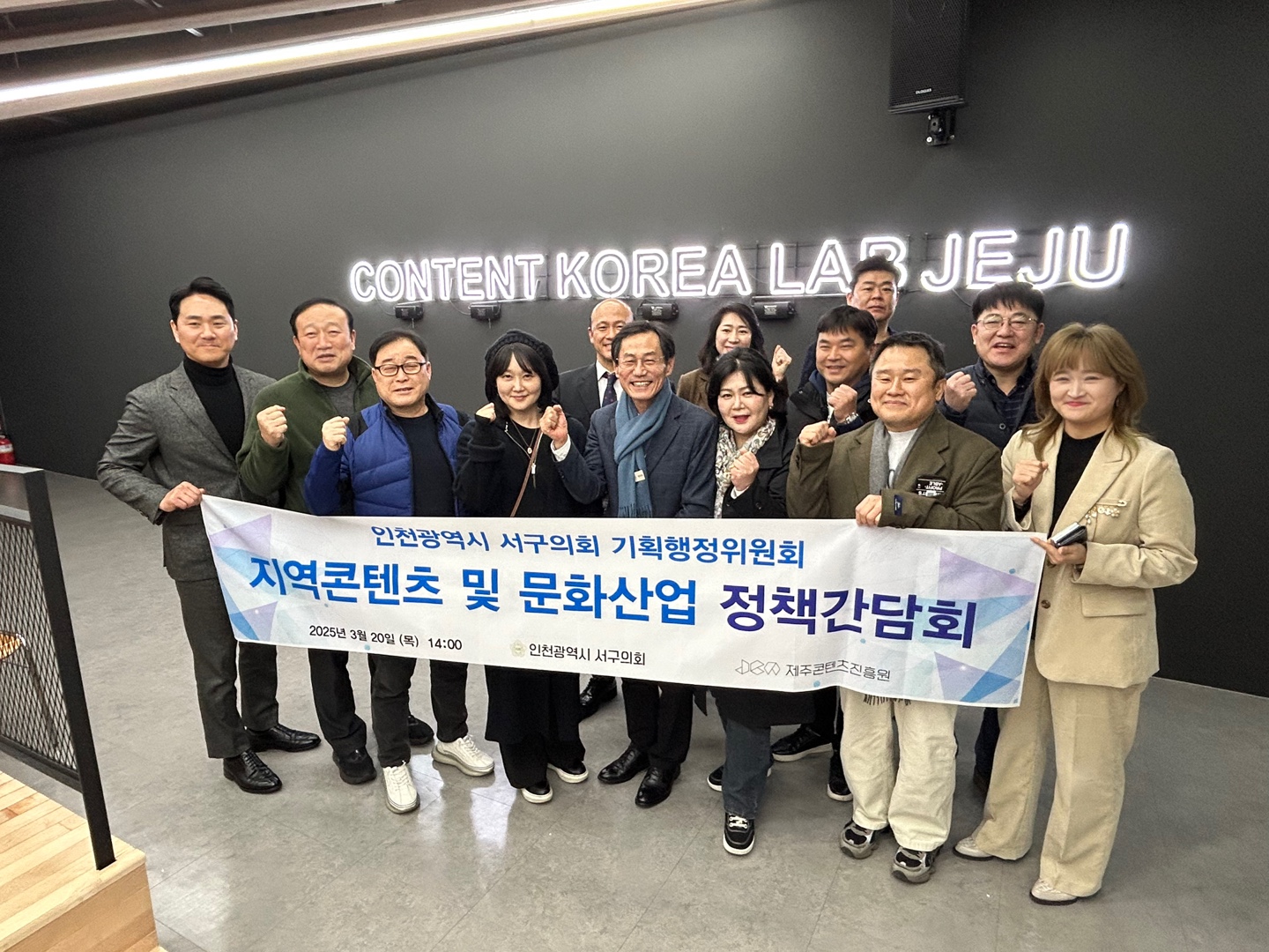 인천광역시 서구의회 기획행정위원회(위원장 김원진) 소속 의원 6명은 2025년 3월 20일 제주특별자치도 제주콘텐츠진흥원(원장 강민부)을 방문하여 지역 콘텐츠 및 문화산업 정책에 대한 현장 시찰을 진행했다.