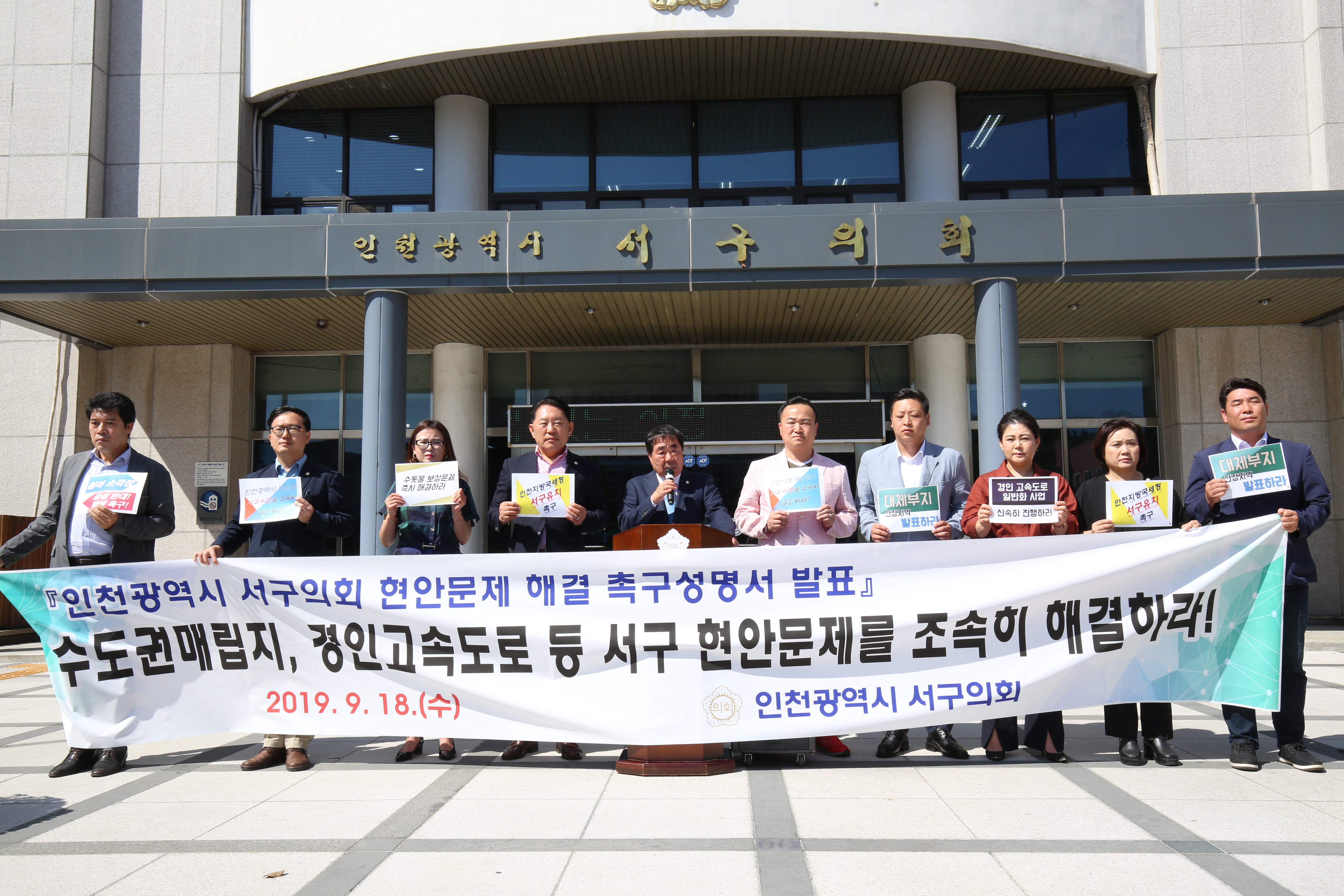 지난 18일 인천광역시 서구의회(의장 송춘규)는 서구 현안문제 해결을 촉구하는 성명서를 발표했다.