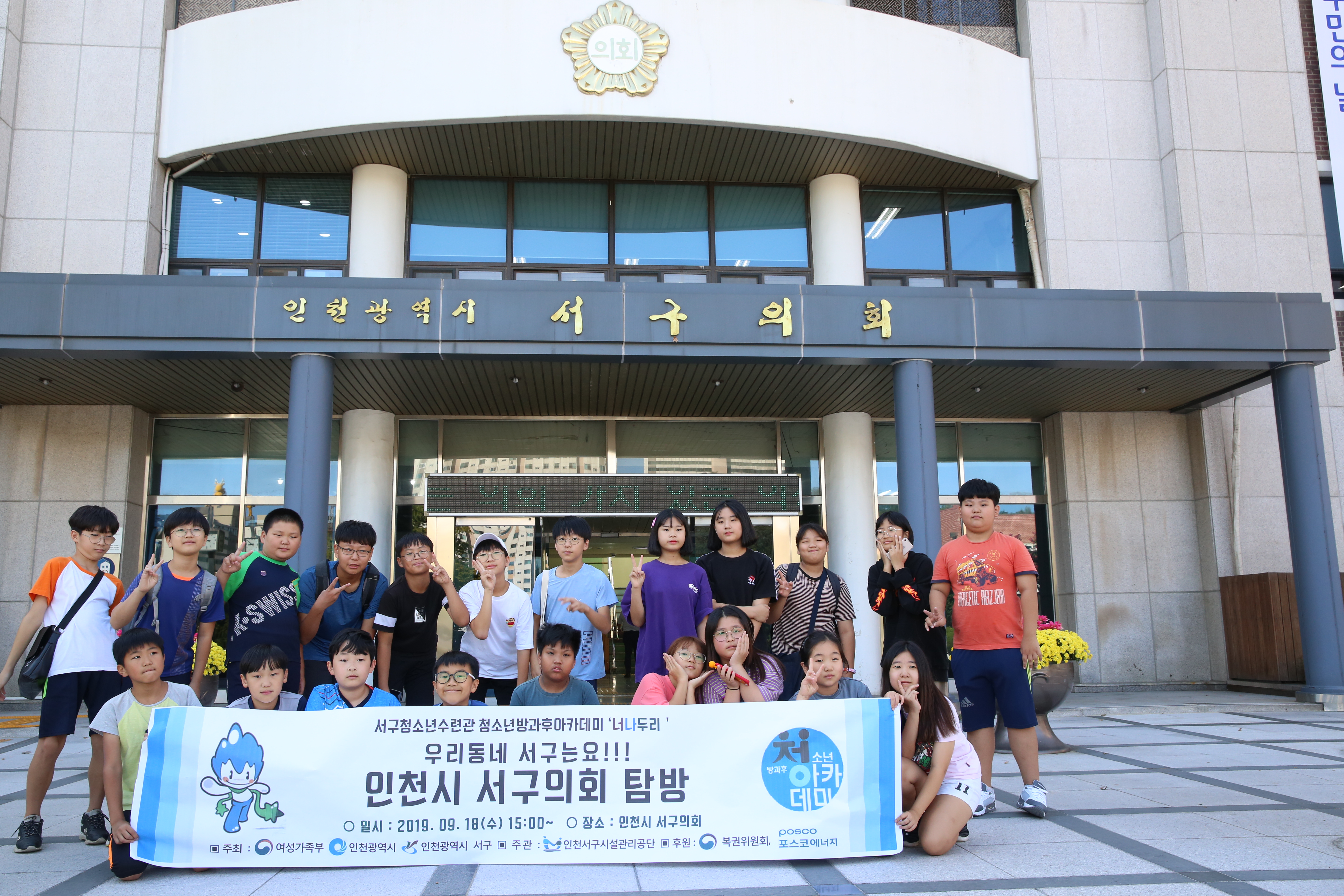 인천 서구의회(송춘규 의장)는 지난 18일 서구관내 5,6학년 초등학생들로 구성된 서구청소년수련관-청소년방과후 아카데미 학생 21명과 인솔자와 함께 의회견학 및 모의체험 프로그램을 실시했다.